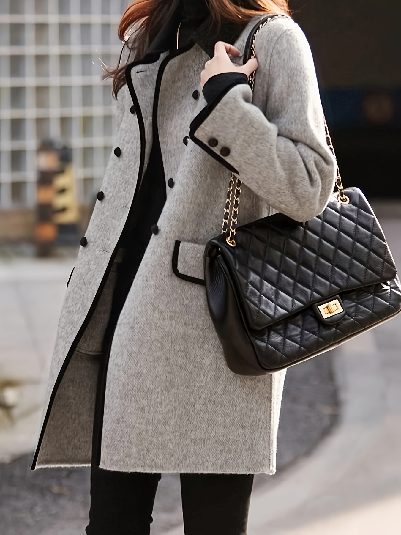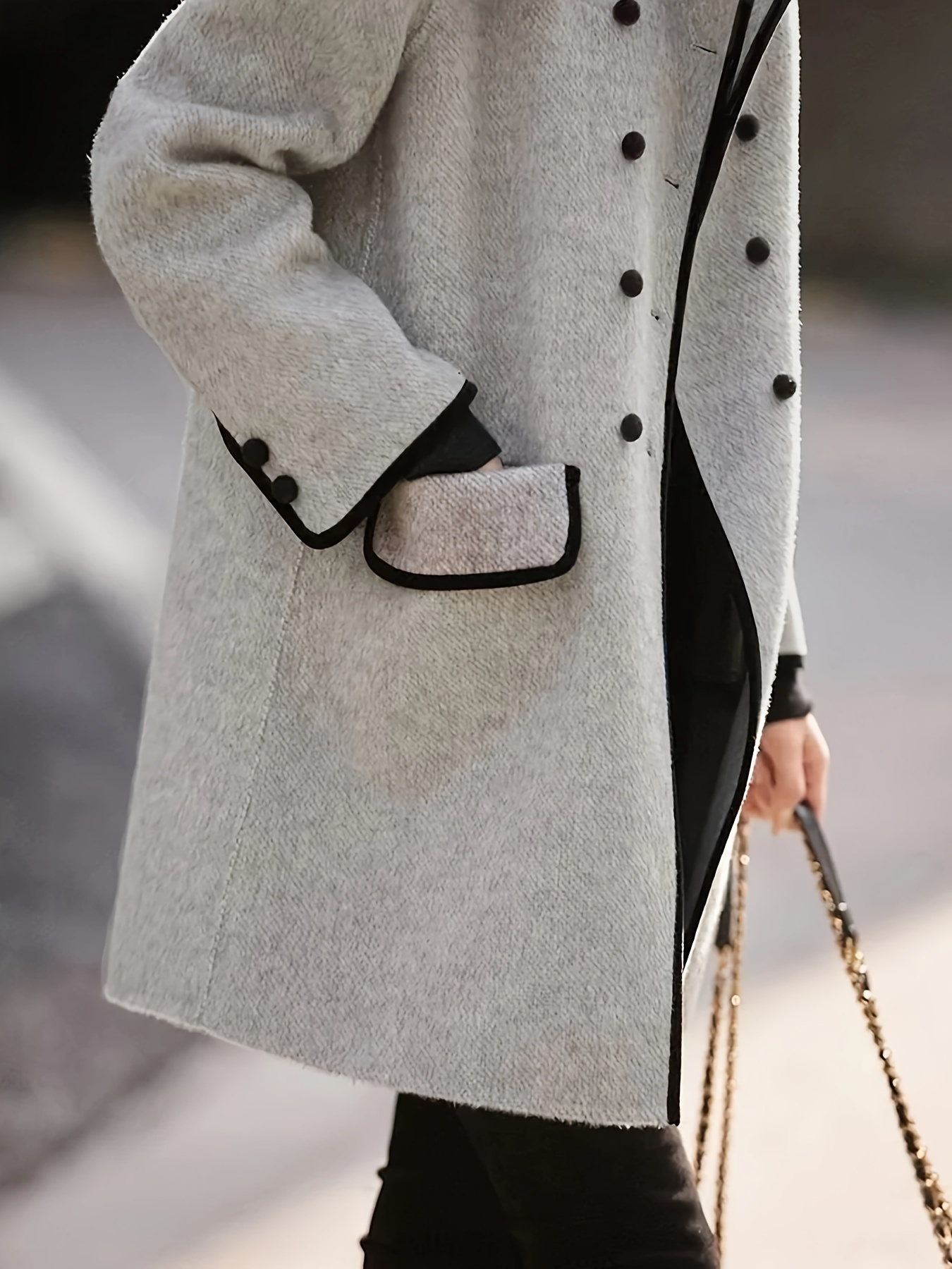 26 Gennaio 2026Cappotto Elegante a doppia pettorina con blocchi di colore, perfetto per l’autunno e l’inverno.
