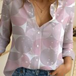 Camicia da donna a maniche lunghe con stampa geometrica e elementi circolari