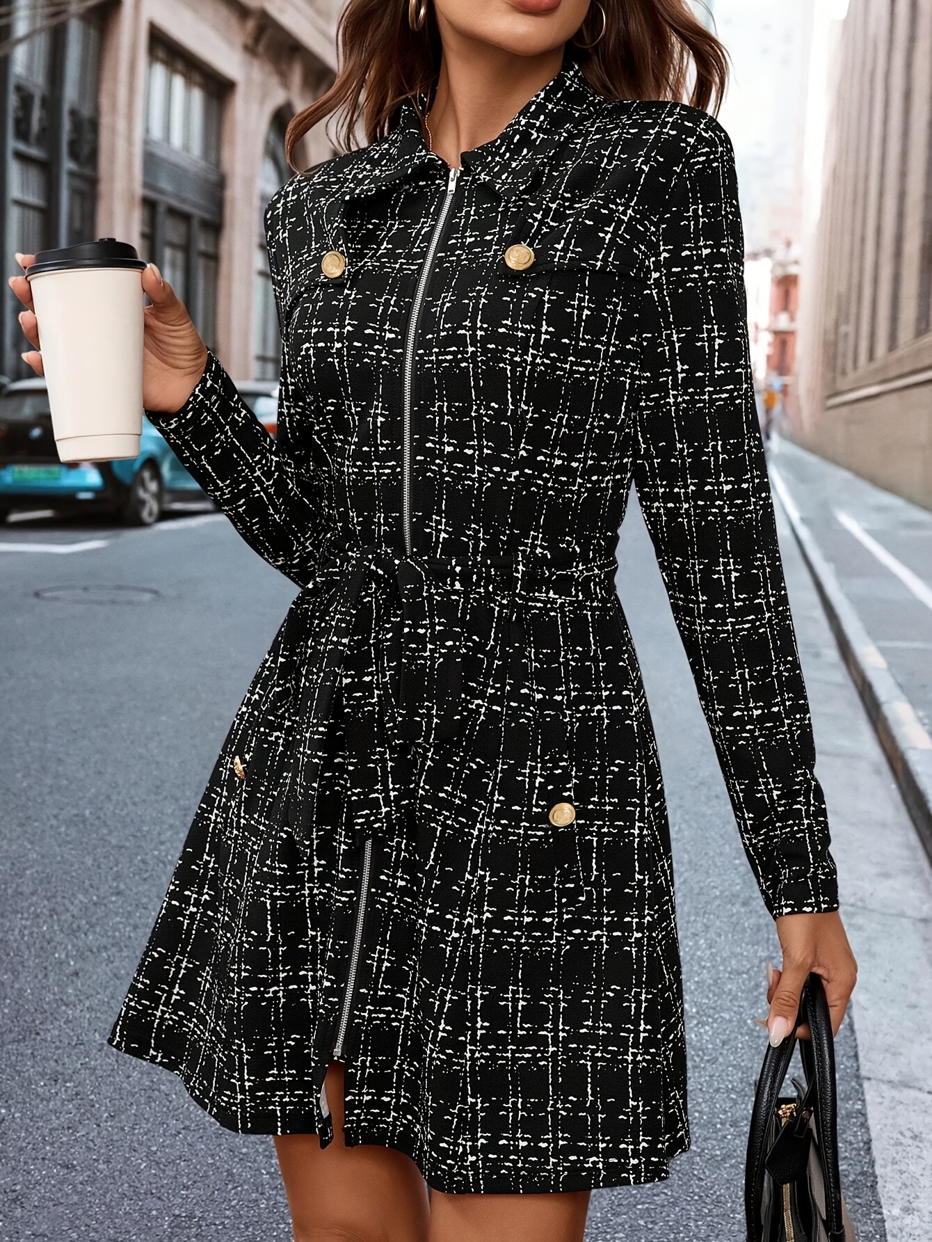20 Febbraio 2026Cappotto Giubbotto A-Line Elegante a Pied-de-Poule per Donna – Slim Fit, Manica Lunga con Colletto a Revers, Perfetto per Autunno/Inverno