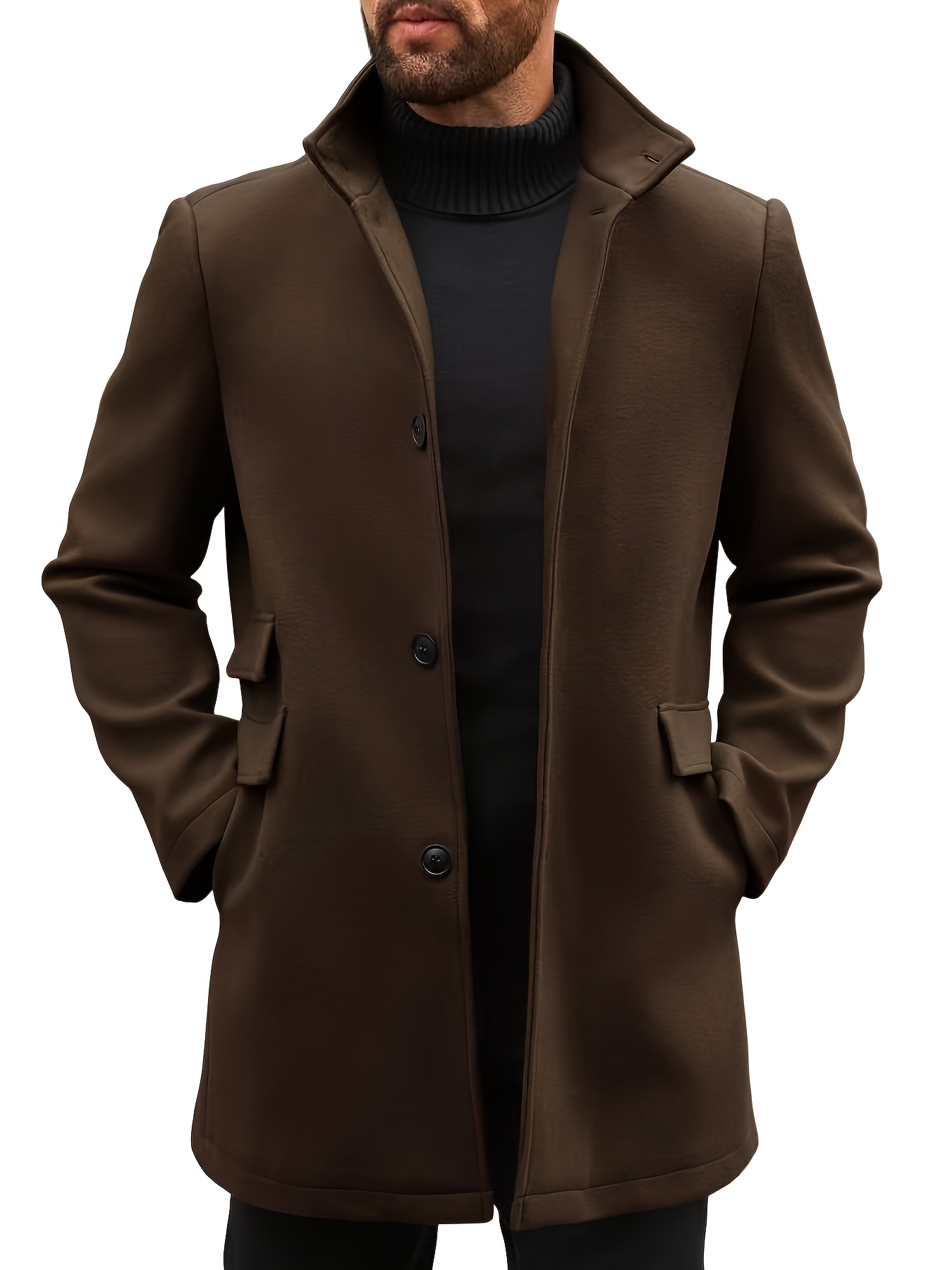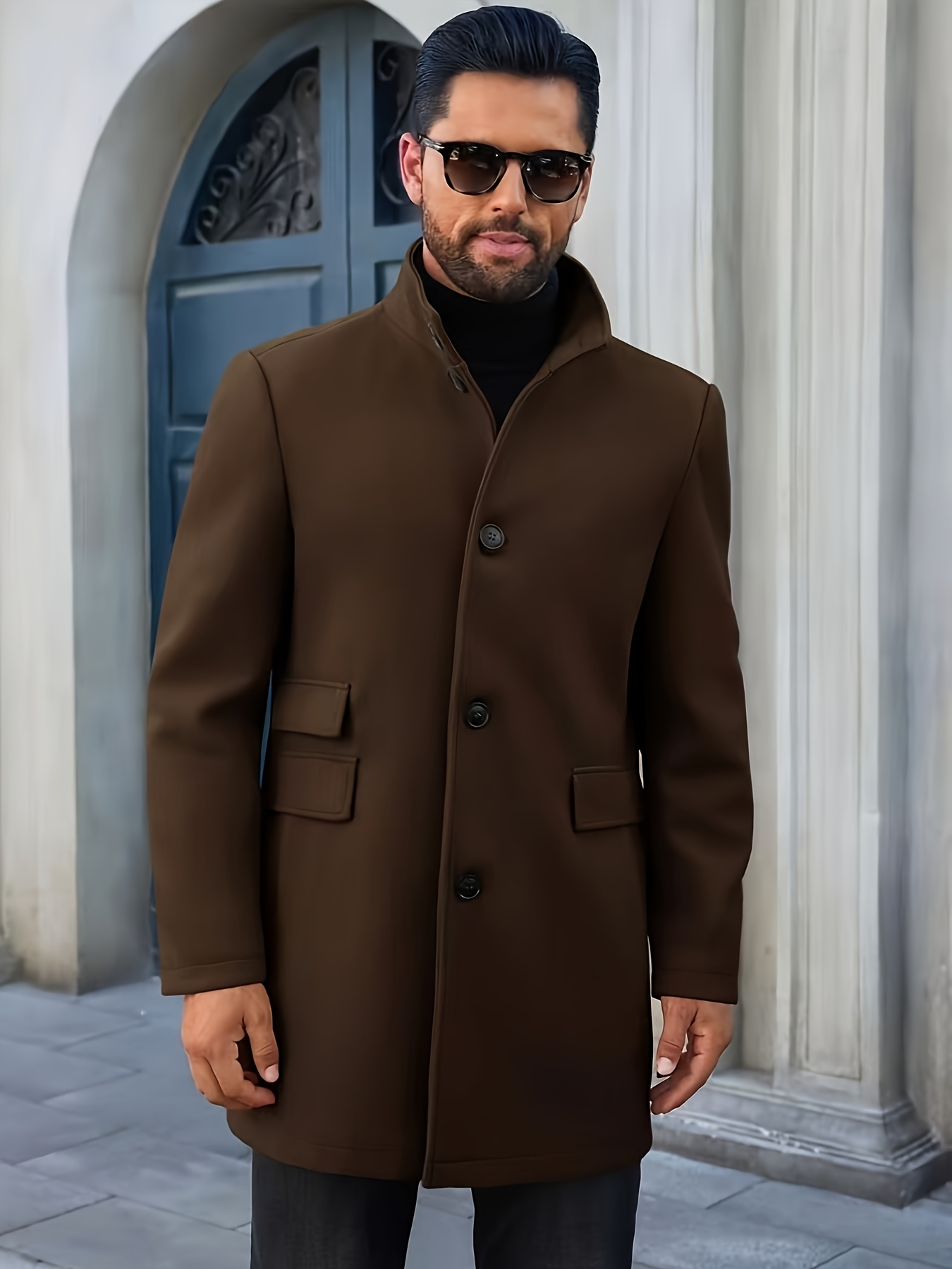 28 Gennaio 2026Cappotto Trench Coat da Uomo Slim Fit Monopetto con Collo Alto, Lunghezza Midi Casual, Tinta Unita, Maniche Lunghe, Leggermente Elasticizzato, Abbottonatura con Bottoni, Tasca, Vestibilità Aderente, Ideale per l’Abbigliamento Quotidiano Autunno e Inverno
