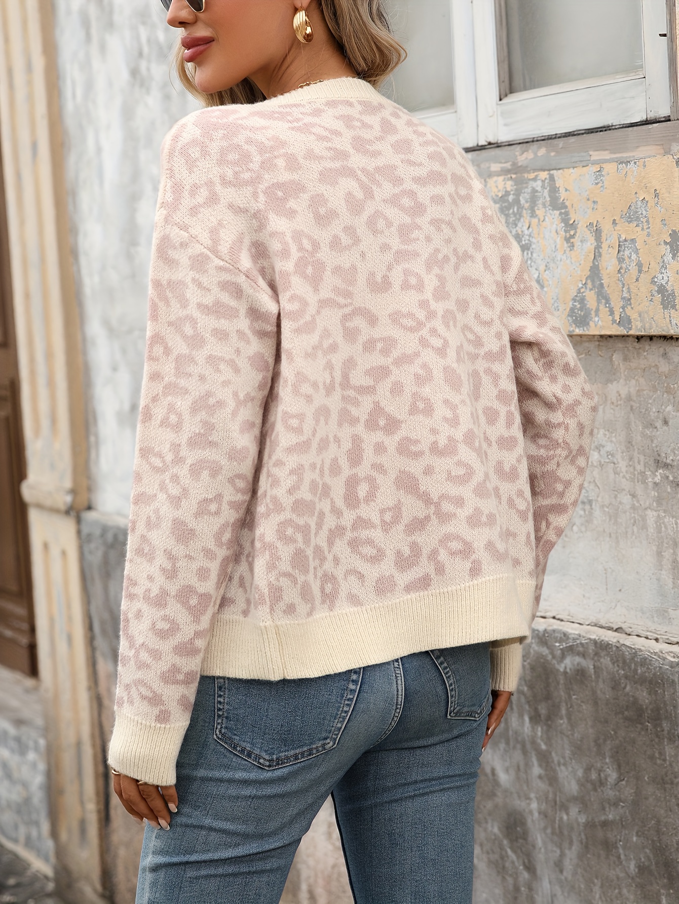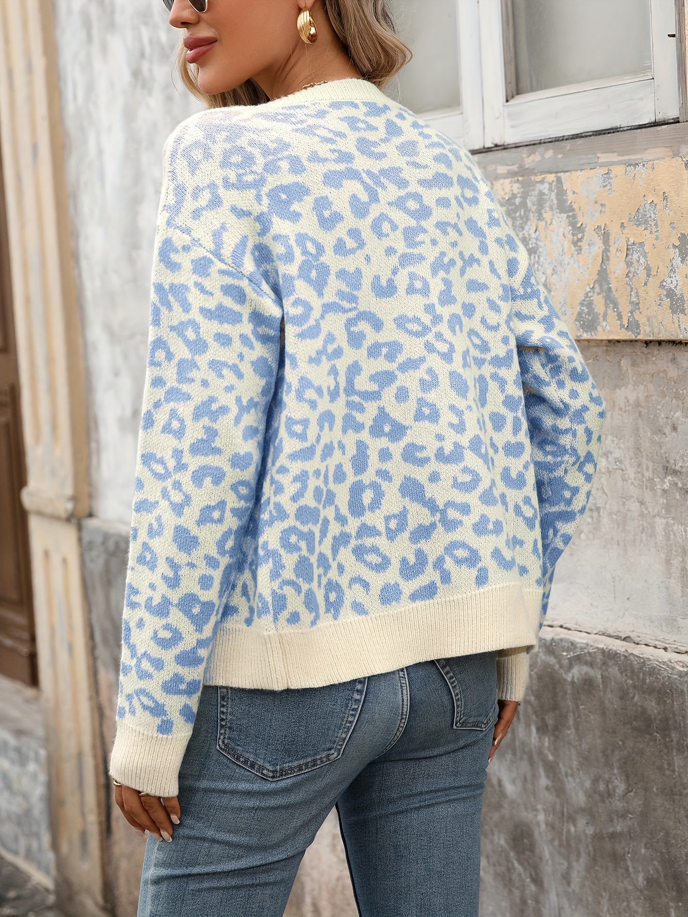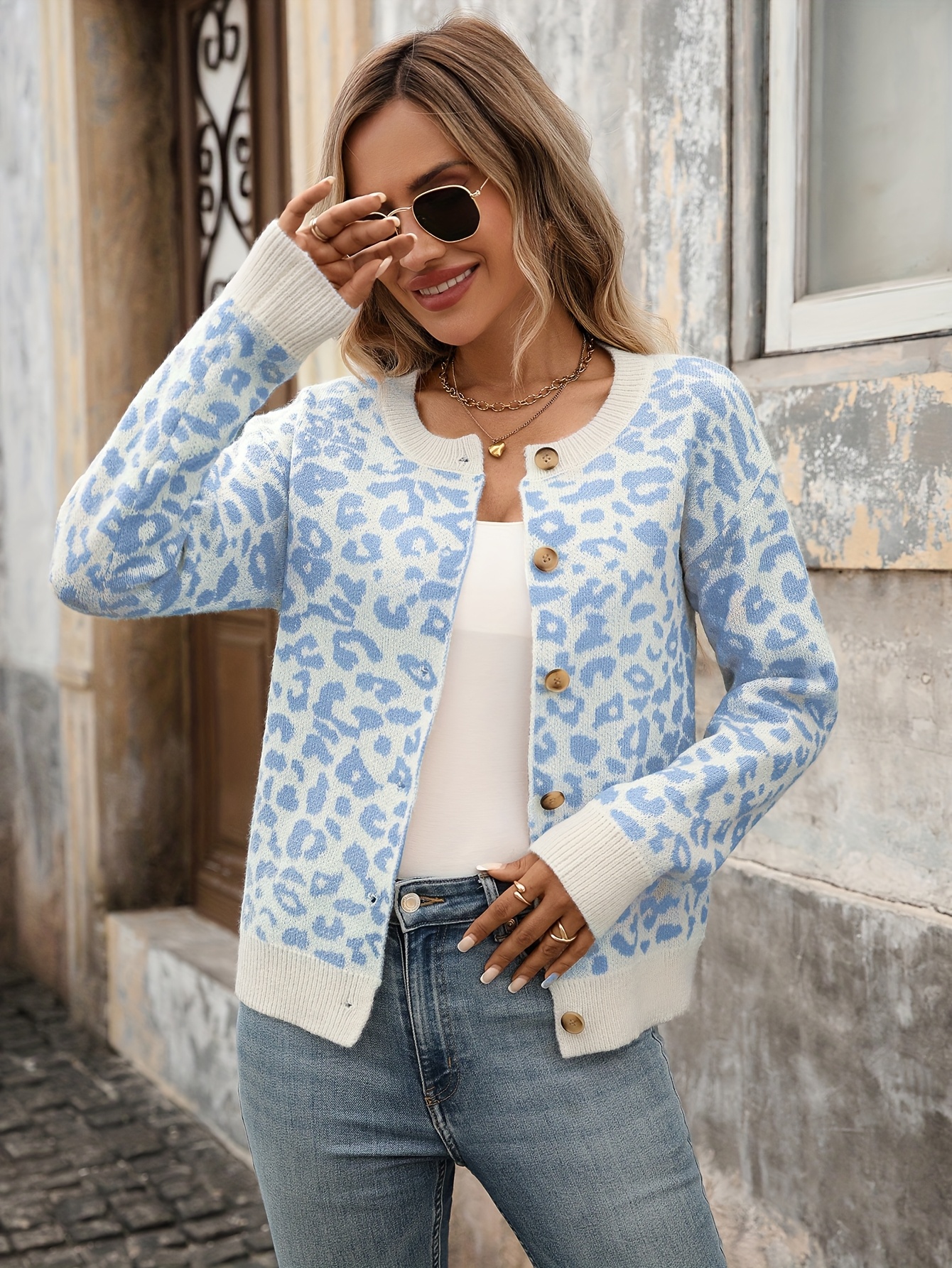 21 Febbraio 2026Cardigan da Donna Autunno Inverno, Girocollo Manica Lunga con Bottoni, Stampa Leopardata Color Block