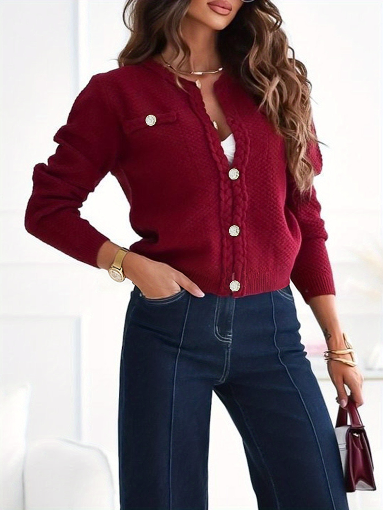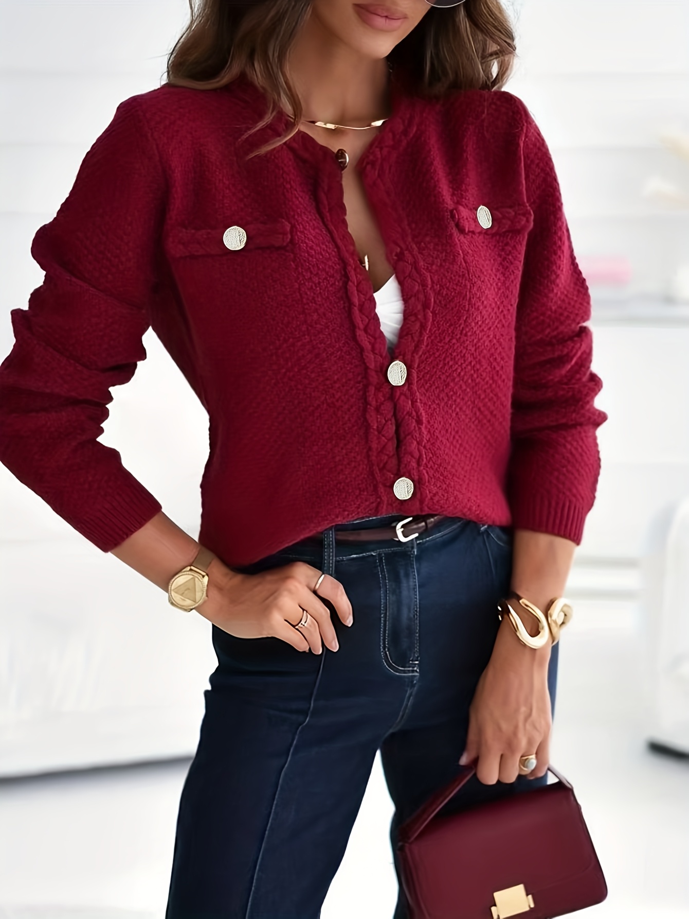 Cardigan elegante da donna a tinta unita con bottoni | Primavera/Autunno,