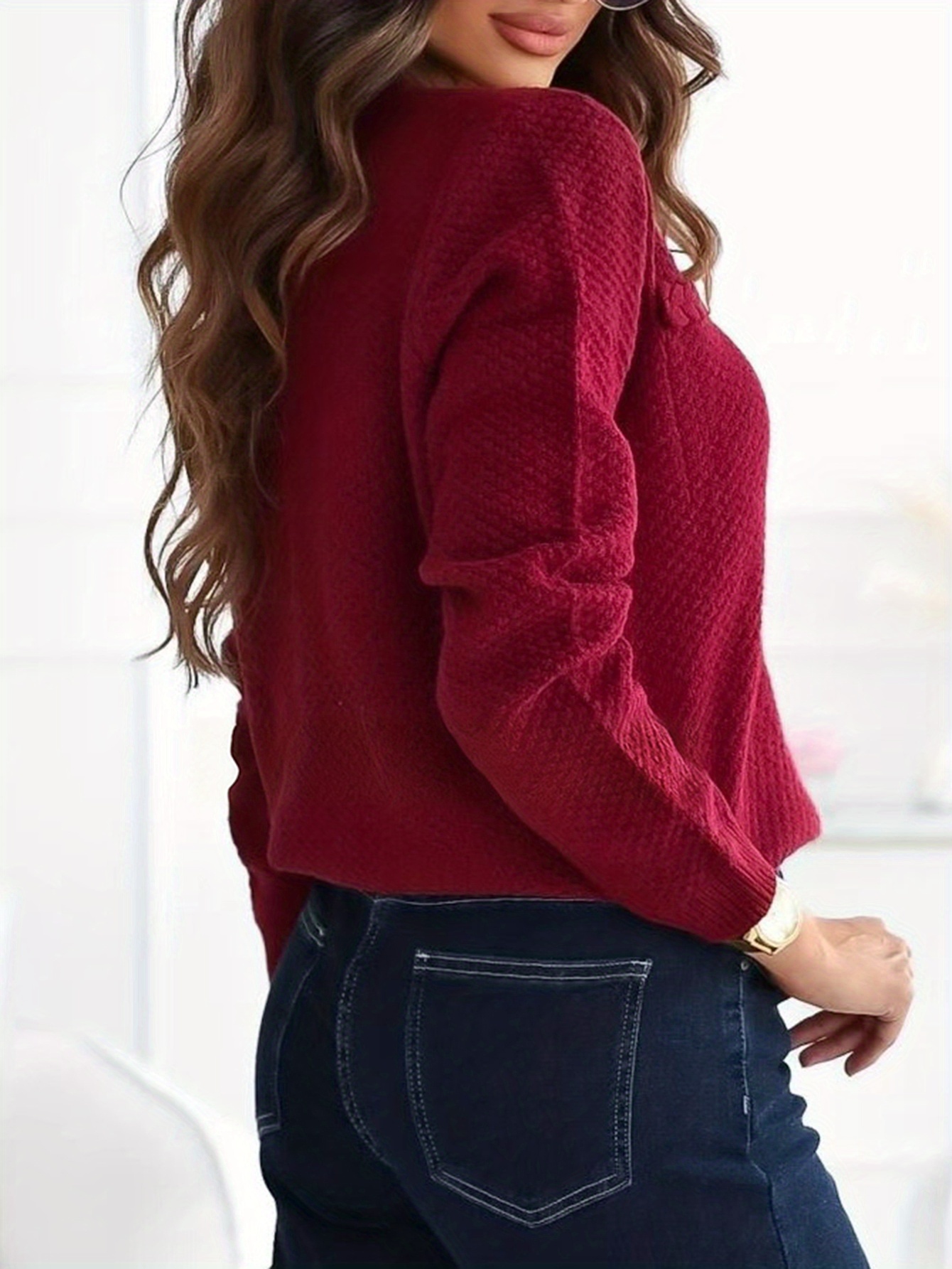 €57,54Il prezzo originale era: €57,54.€35,00Il prezzo attuale è: €35,00.Maglione Elegante da Donna a Tinta Unita Floreale, Girocollo Manica Lunga