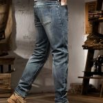 Pantaloni lunghi da uomo in denim stretch, stile streetwear, jeans blu sbiaditi,