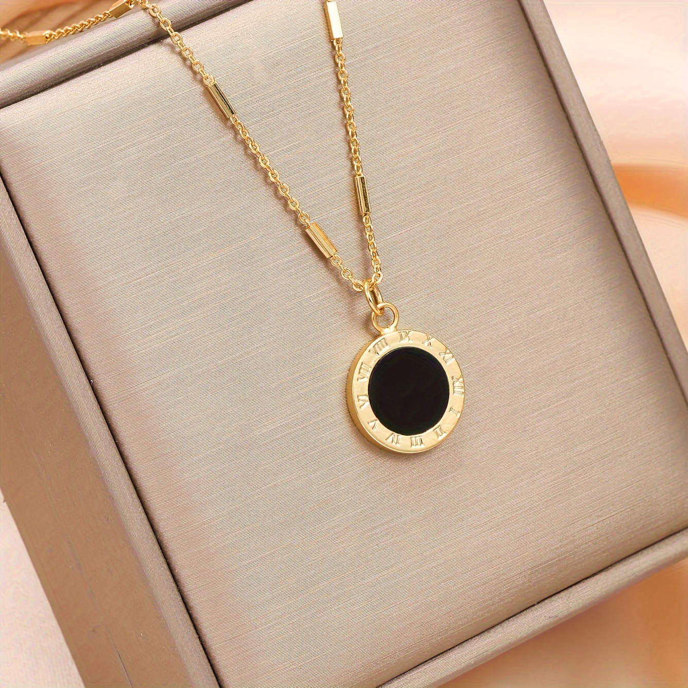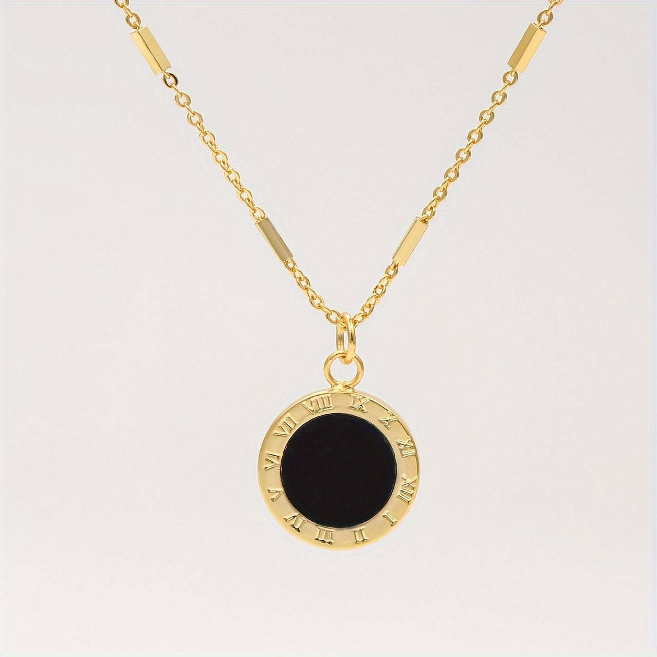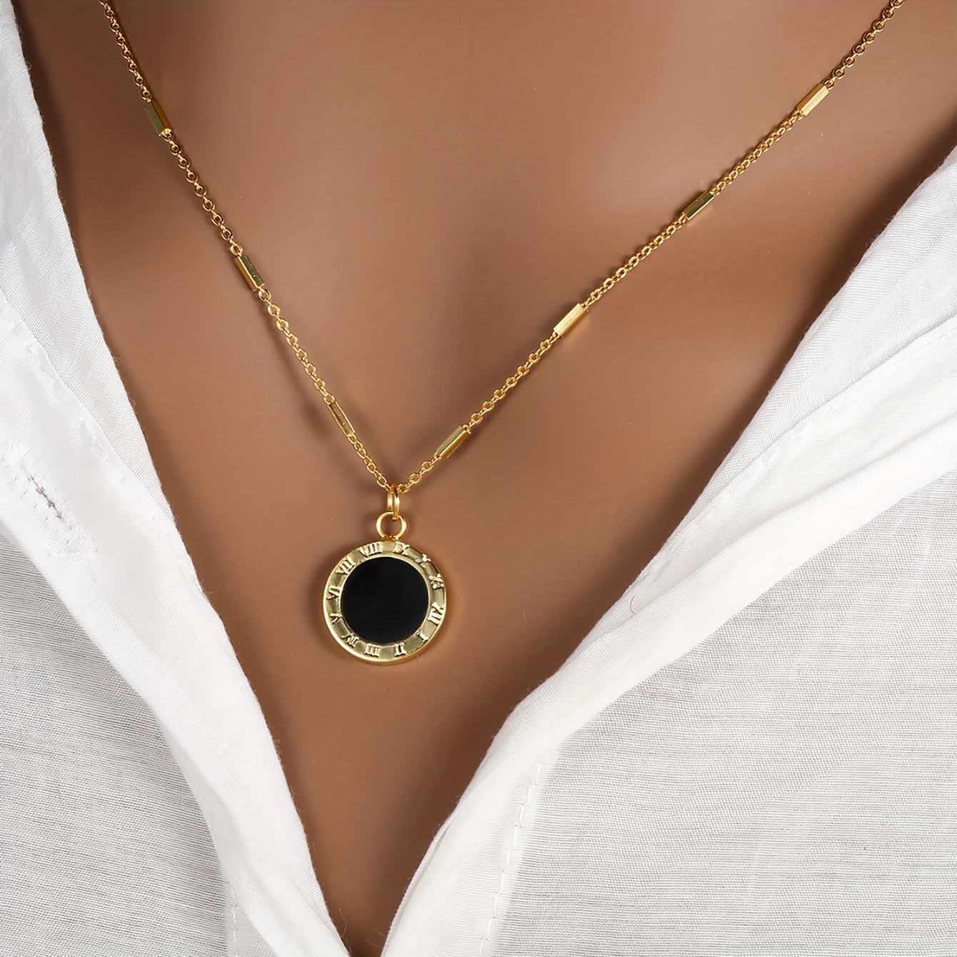 21 Febbraio 2026Collana con ciondolo rotondo nero, minimalista e versatile, con numeri romani, che incarna uno stile vintage