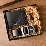 Set di Cinture per Uomini, 3 pz., Combo Regalo con Portafoglio Business + Cintura + Portachiavi, Ideale per Festività e Abito da Ufficio, Presento Perfetto per Famiglia, Personi Carati, Amici