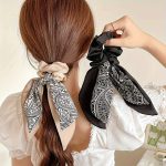 Fermagli 2 pezzi per Capelli Floreali Nero e Bianco con Nodo – Legacci alla Moda per Code di Cavallo,