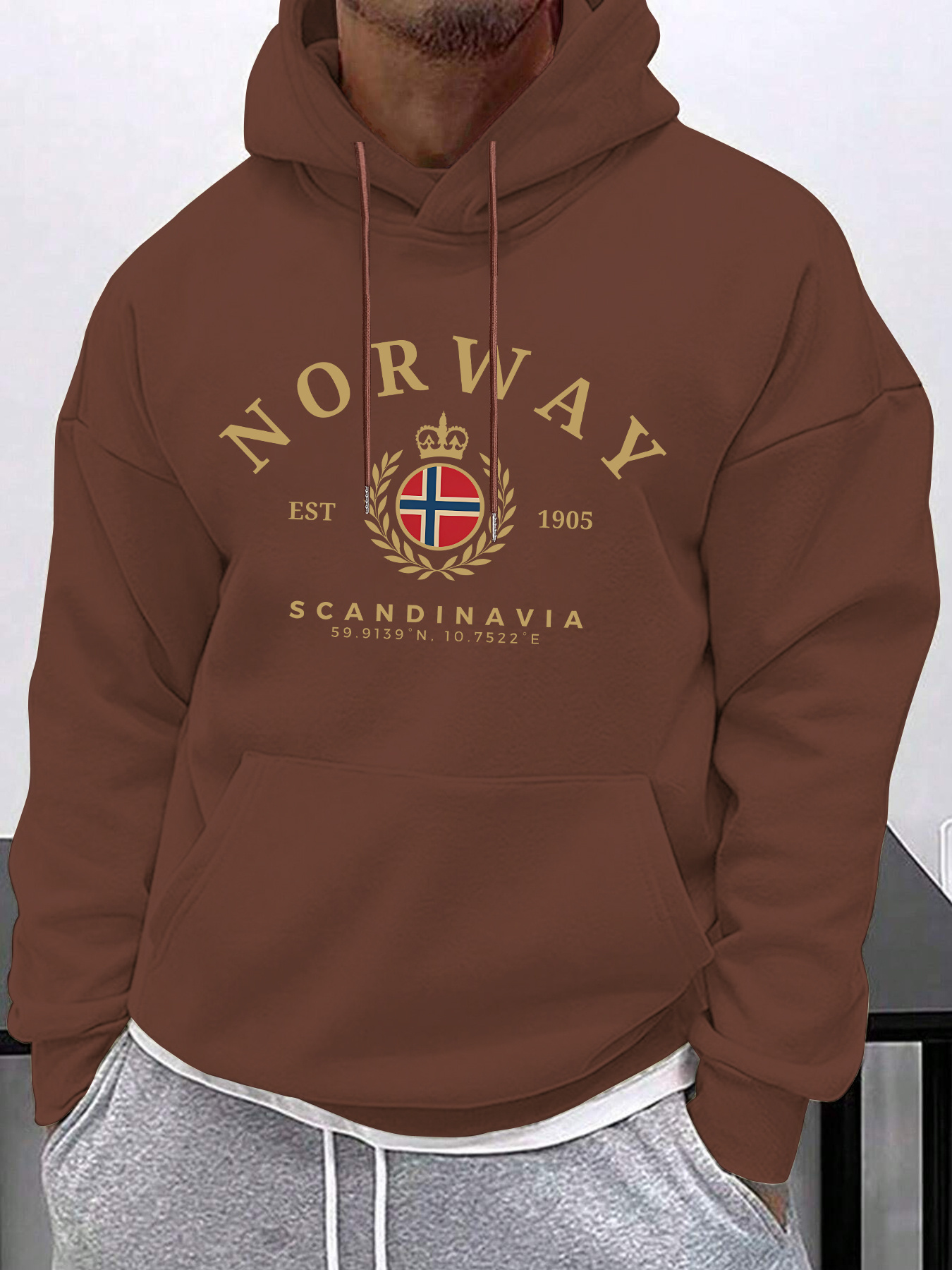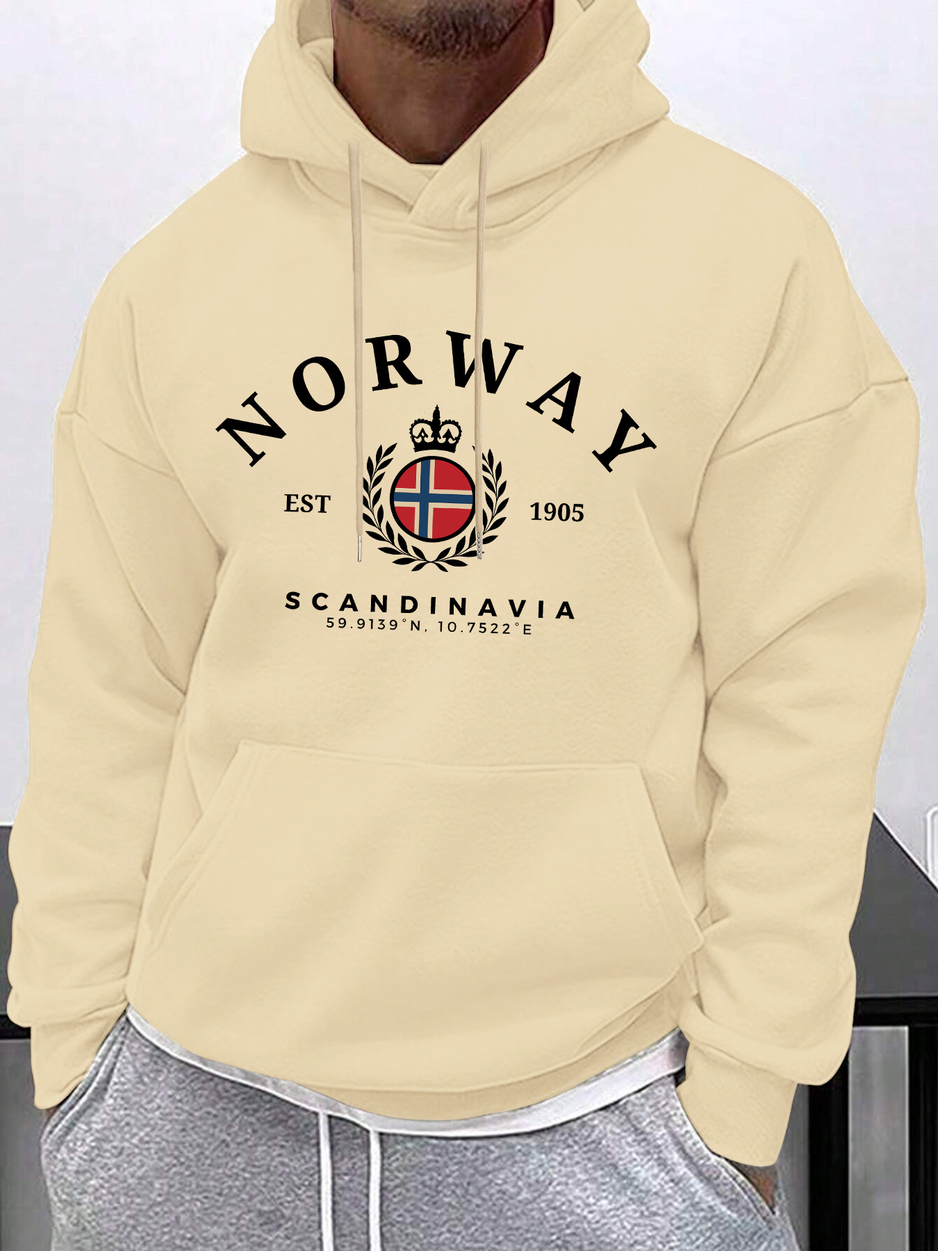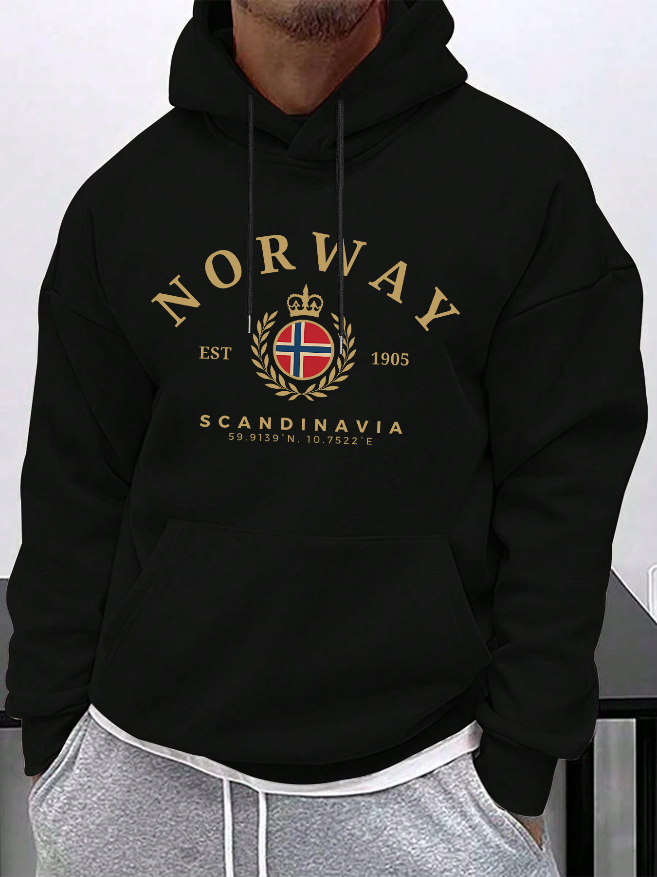 27 Gennaio 2026Felpa con cappuccio da uomo con stampa motivo ‘Norvegese Scandivano’, dotata di coulisse e tasca a marsupio, che offre un look casual comodo ed elegante