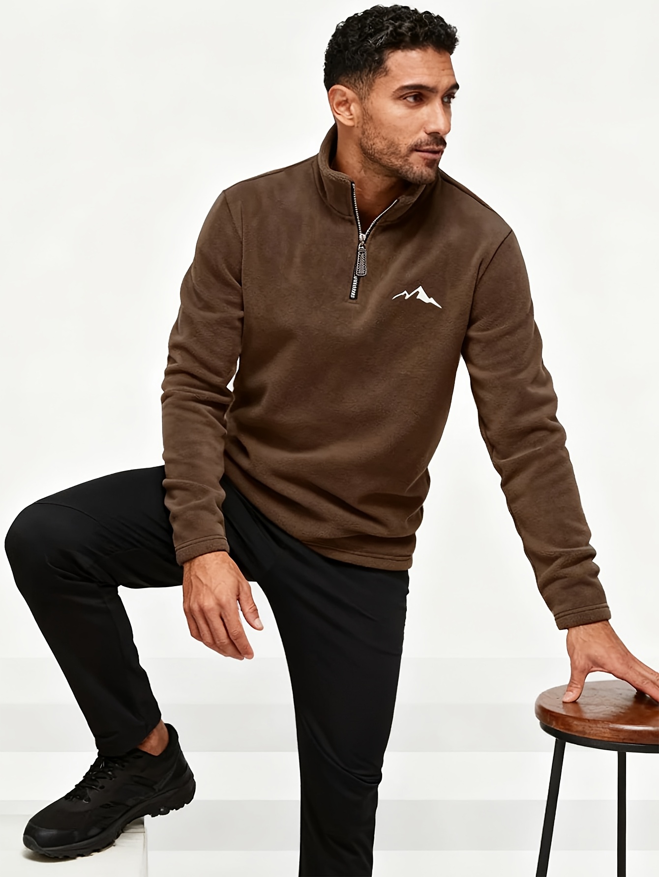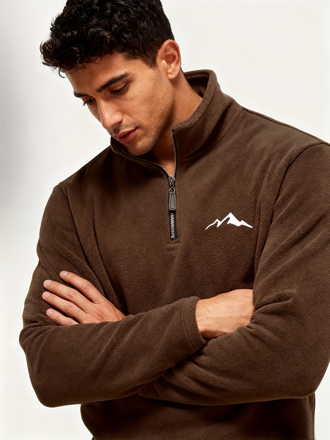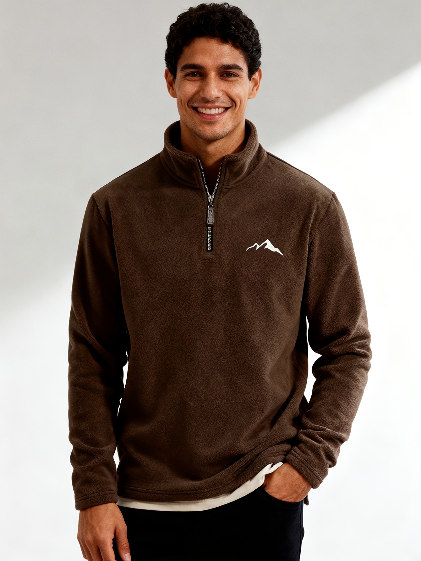 26 Gennaio 2026Felpa da uomo con mezza zip e fodera in pile con logo ricamato – Pullover casual a maniche lunghe, orlo asimmetrico, collo alto, vestibilità regolare, collezione autunno/inverno, felpa casual|Felpa con orlo asimmetrico|Felpa con zip