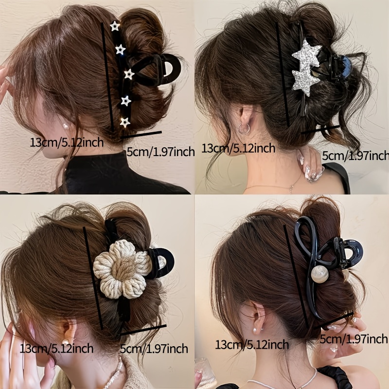 15 Aprile 20264pz Graffi per Capelli Eleganti da Donna, Grandi Fermagli a Pinza a Forma di Squalo con Design a Stella/Fiore/, Accessori per Capelli Antiscivolo per Capelli Spessi, Perfetti per Uso Quotidiano, Feste