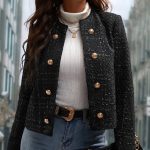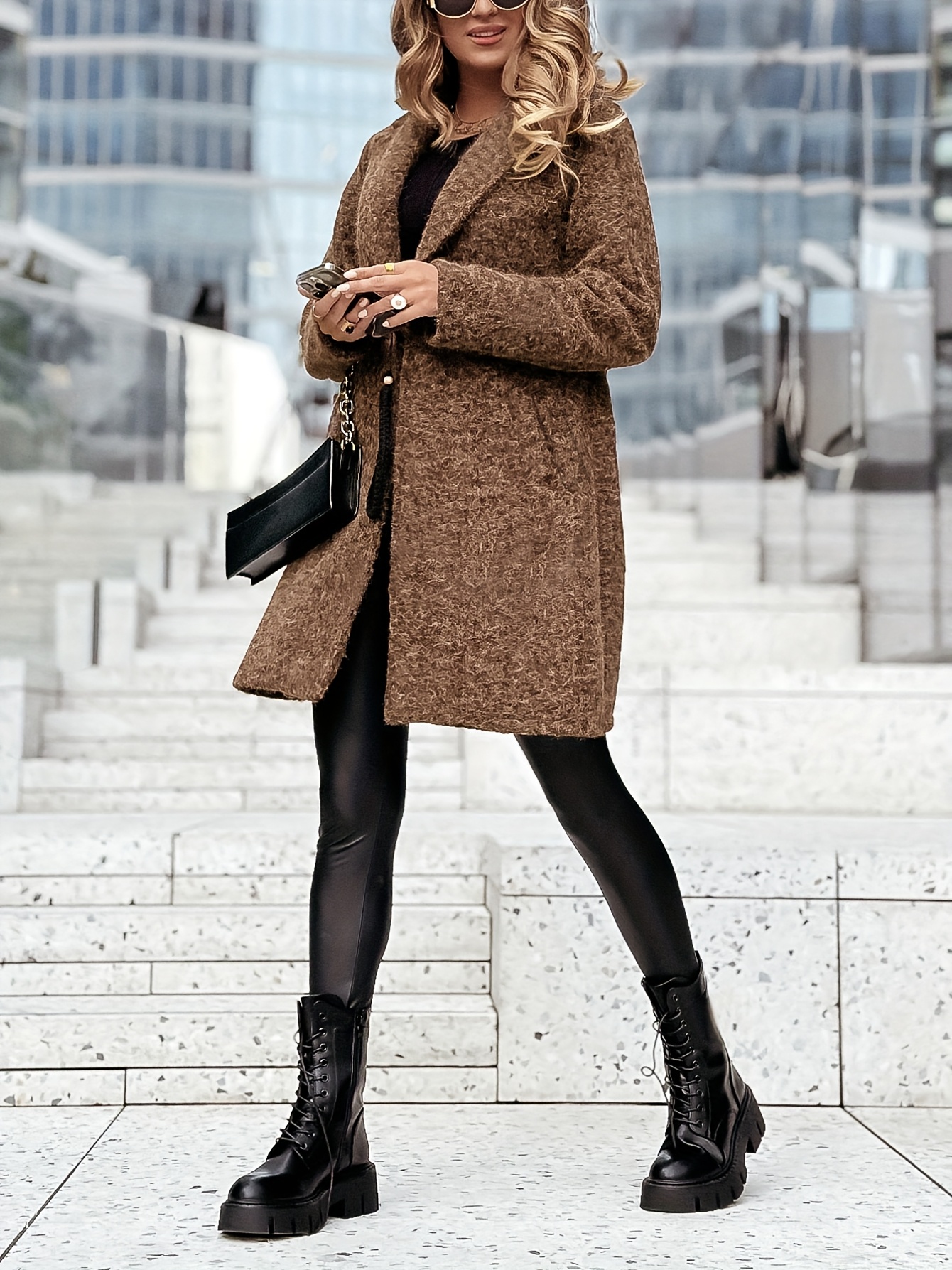 26 Gennaio 2026Giacca Elegante Minimalista Vintage a Maniche Lunghe con Colletto e Bottoncino Singolo, Aperta Davanti, Monopezzo, Midi, per Autunno/Inverno