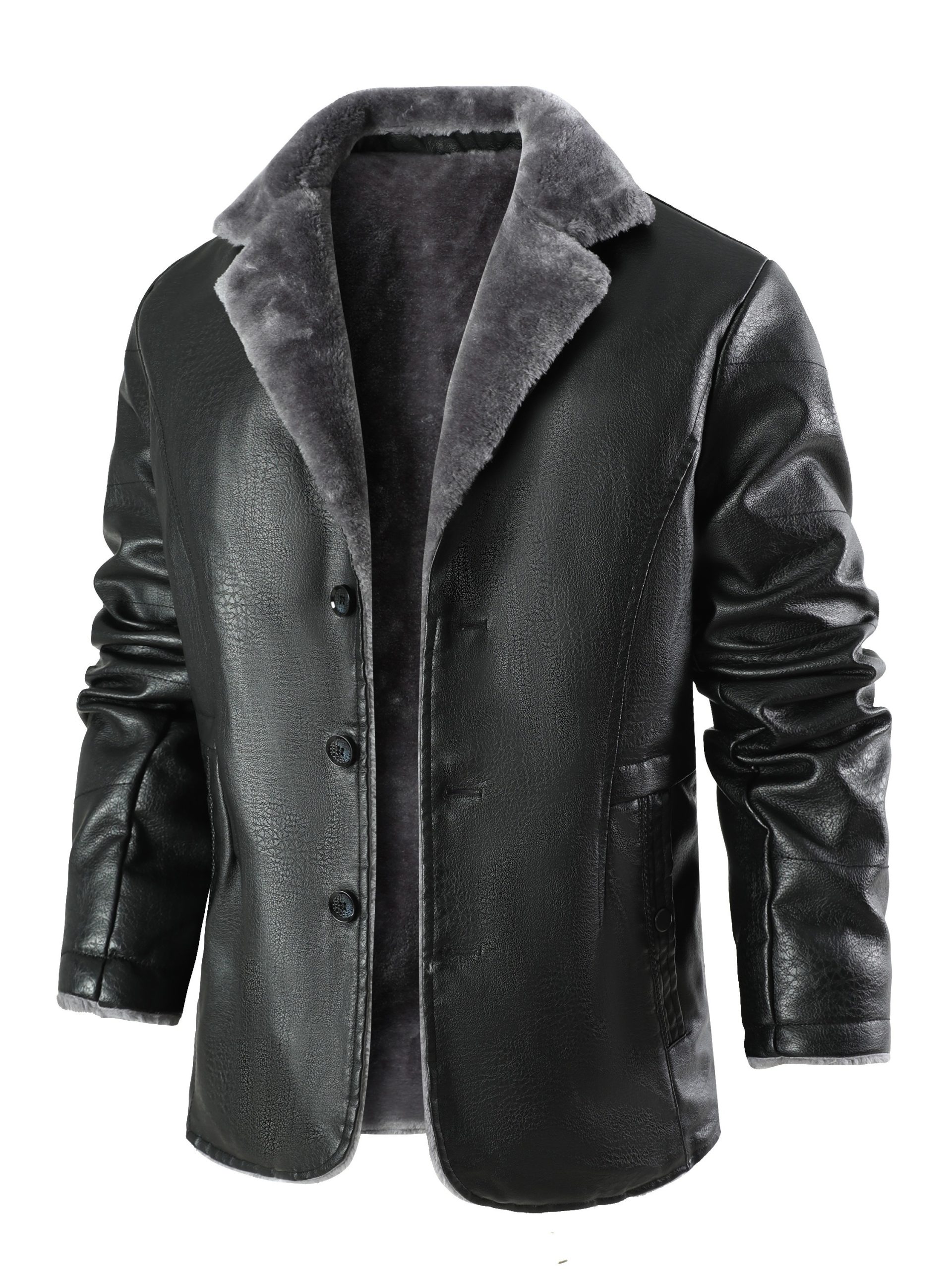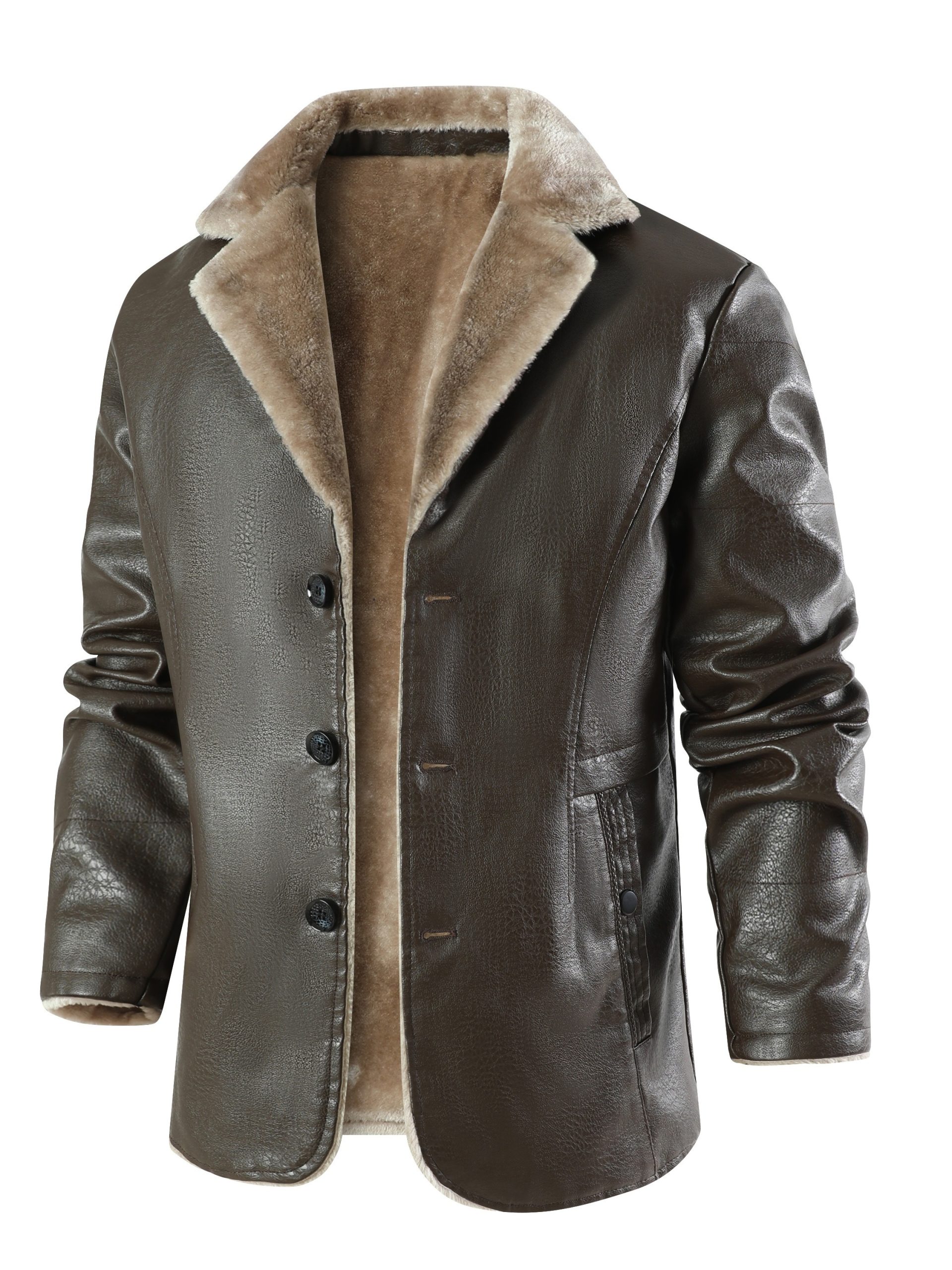26 Gennaio 2026Giacca in Pelle PU Uomo con Fodera in Pile, Collo a Larga Vestibilità, Stile Business Casual, per Uomini di Mezza Età e Anziani, Cappotto in Pelle PU Monopezzo