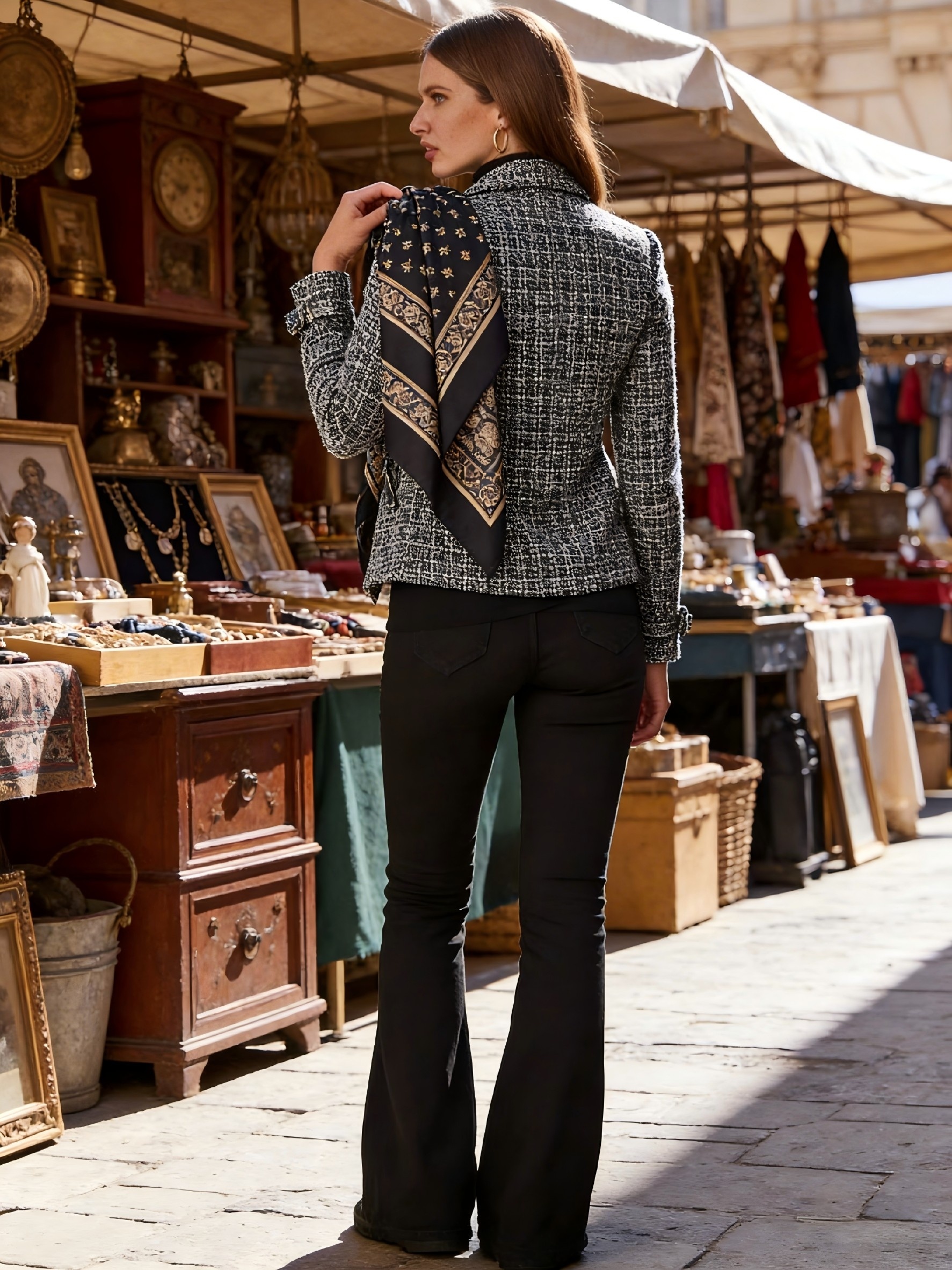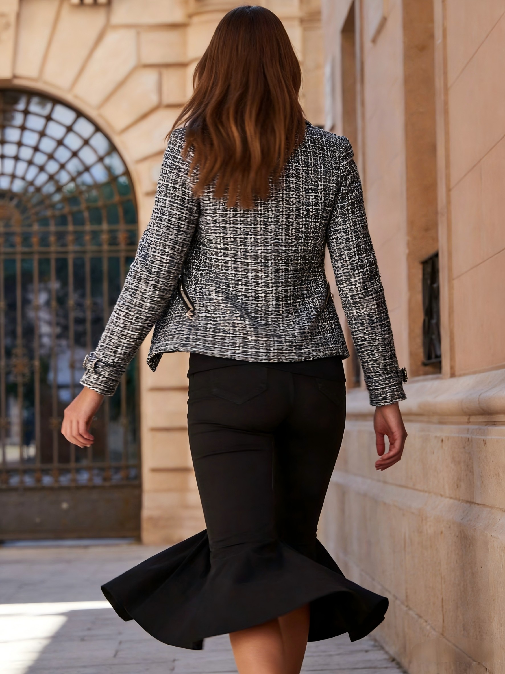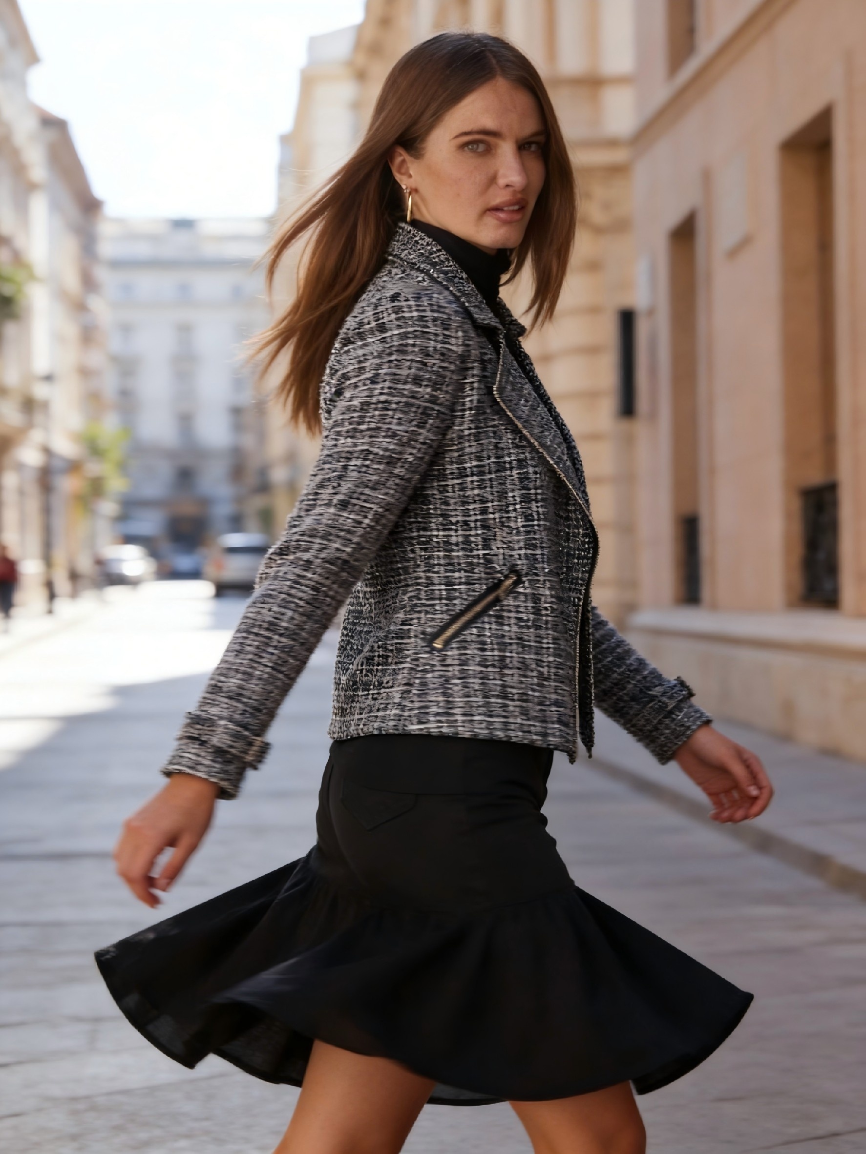 16 Febbraio 2026Giacca Slim-Fit Premium Bouclé Nera | Doppia Tasca con Zip, Fodera Completa, Polsini Regolabili, Elegante Motivo Gingham, Manica Regolare, Manica Lunga, Materiale
