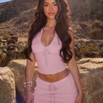 Gonna Set Elegante Due Pezzi Senza Schiena per Donna, Primavera ed Estate. Top con Design Spalle Scoperte, Dettagli Nodo e Fiocco, Abbinato a Gonna Mini Piegata. Ideale per Uscite Quotidiane, Appuntamenti e Vacanze al Mare