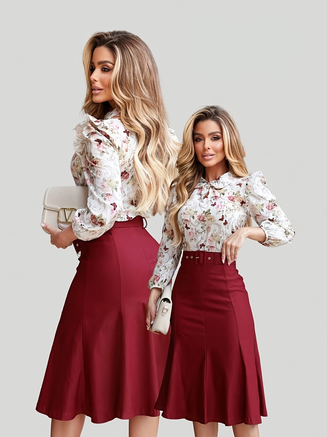 Gonna Completi da donna con mezza gonna, Completi casual da 2 pezzi con camicia a righe
