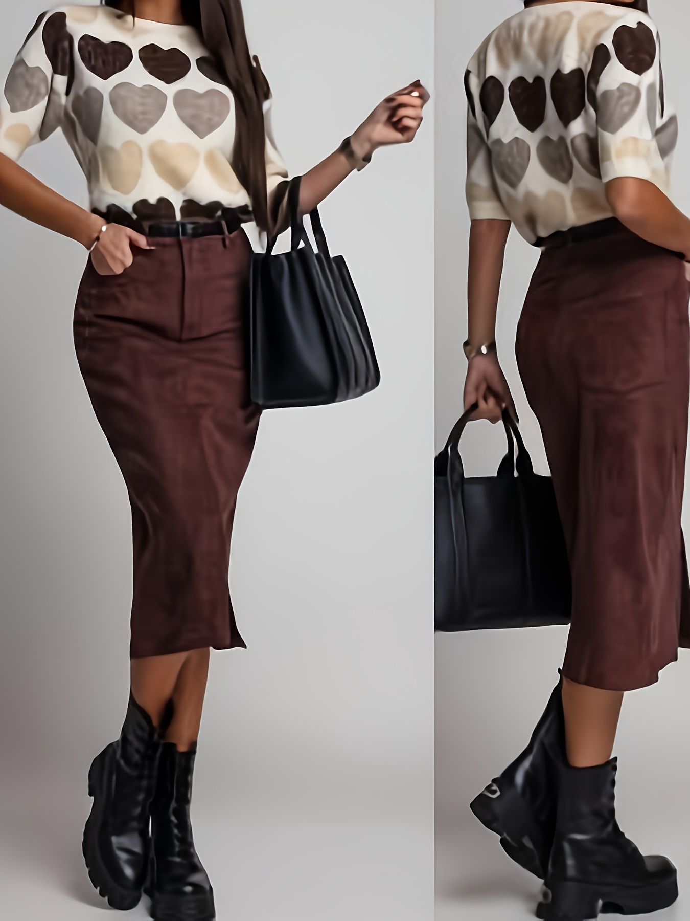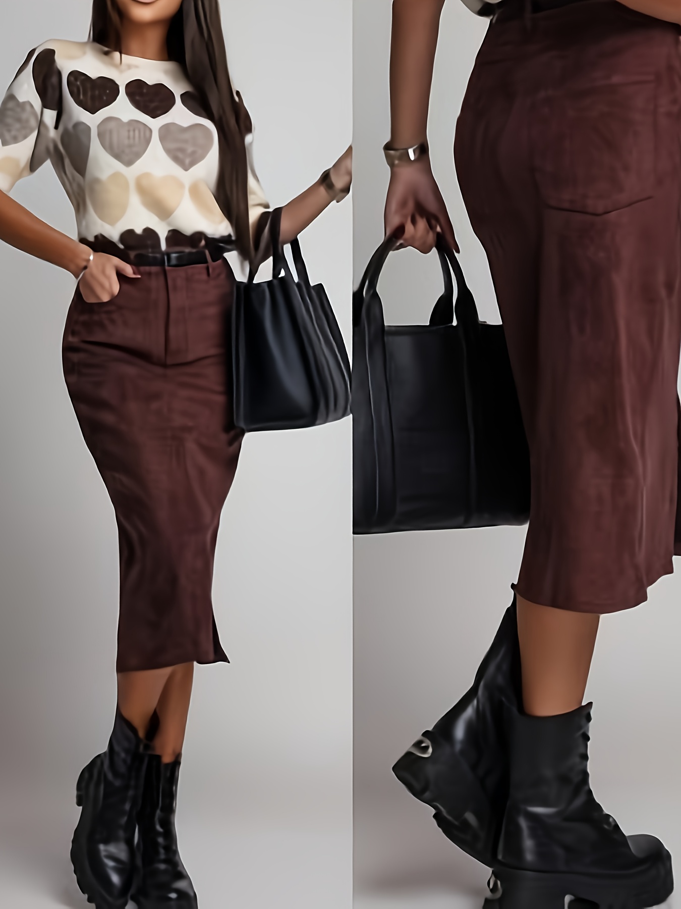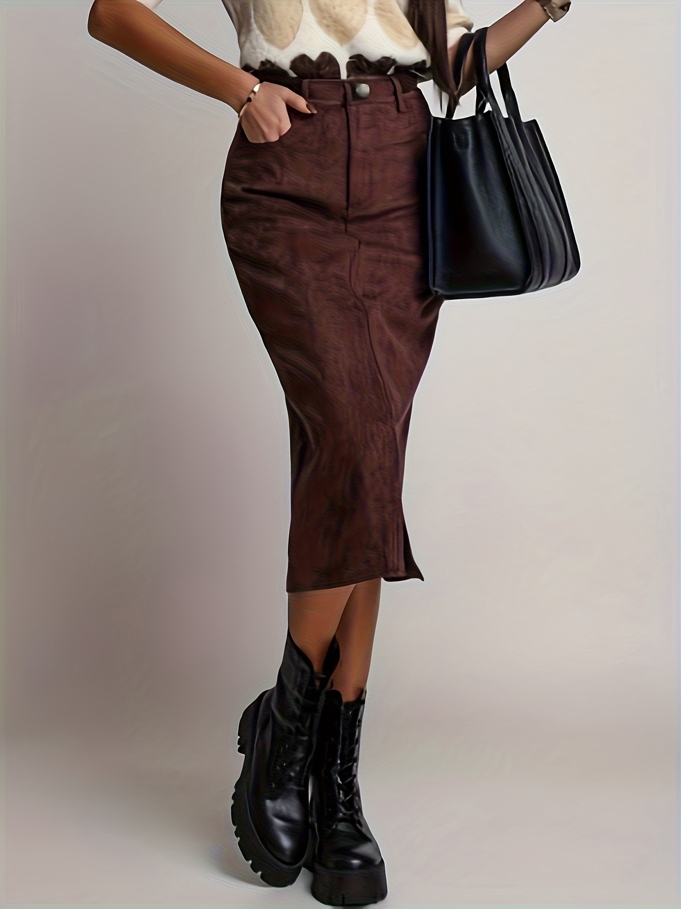 20 Febbraio 2026Gonna Elegante Marrone con Spacco a Mezza Lunghezza per Donna NS702