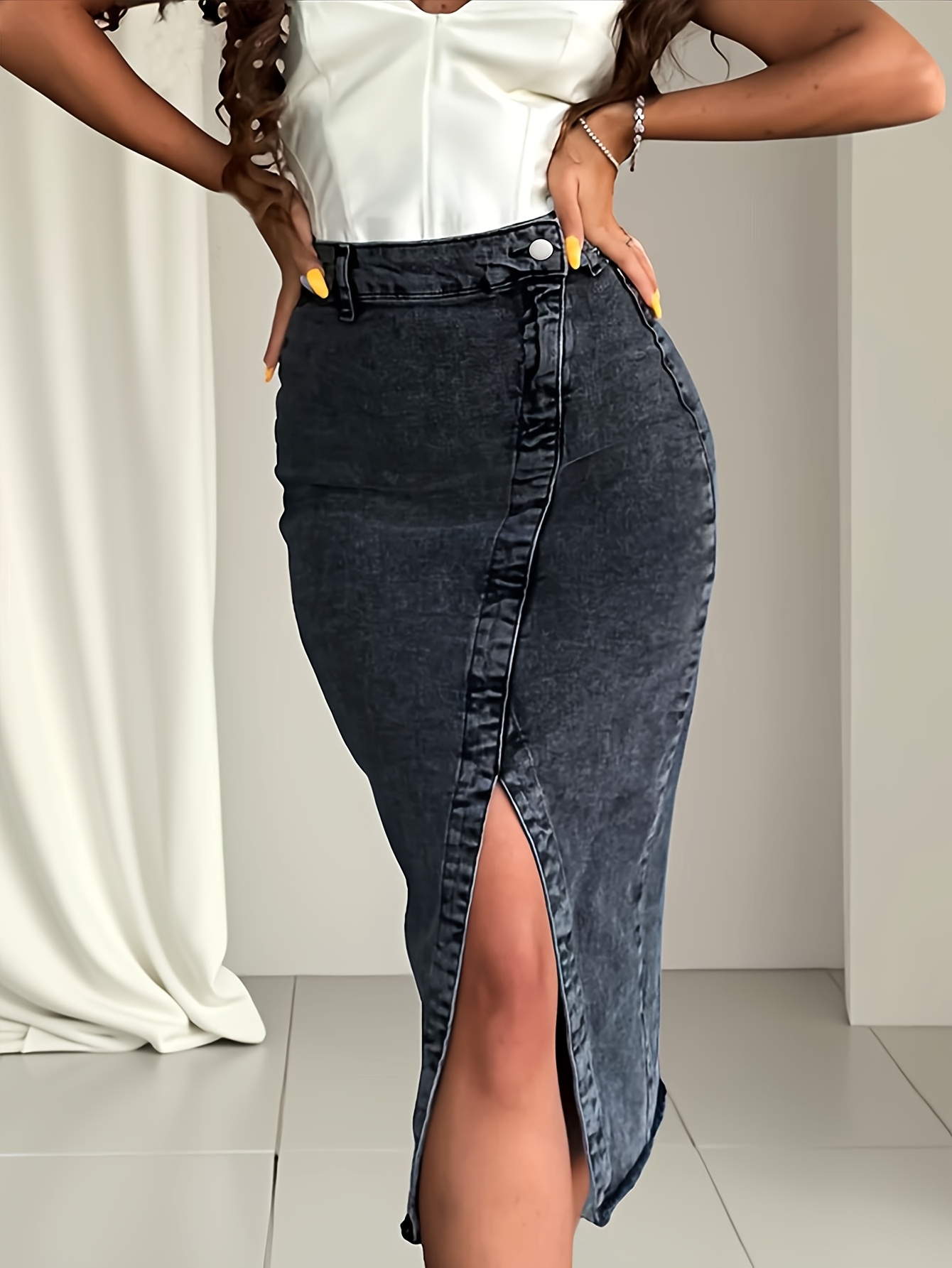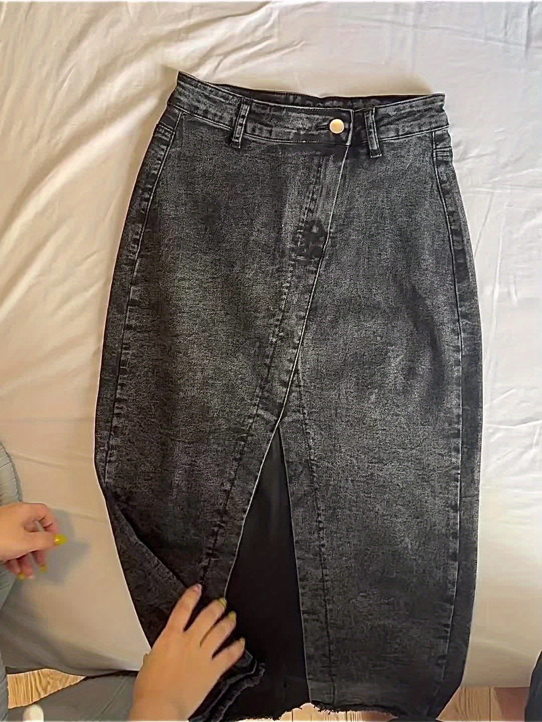 20 Febbraio 2026Gonna in denim da donna con spacchi, orlo elastico, effetto vintage lavato, ideale per primavera/estate e tutte le stagioni. Abito elegante di alta qualità per la vita quotidiana e il lavoro, con chiusura a zip, tessuto stretch confortevole in stile francese, lavabile in lavatrice (effetto vintage)