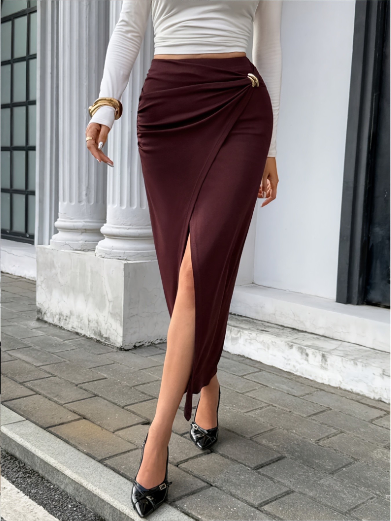 2 Marzo 2026Gonna lunga irregolare color caffè da donna con alta elasticità e fibbia in metallo, caratterizzata da un design non convenzionale adatta per uscite, stile rurale, perfetta per l’abbigliamento autunnale da donna, ideale per le spose d’onore