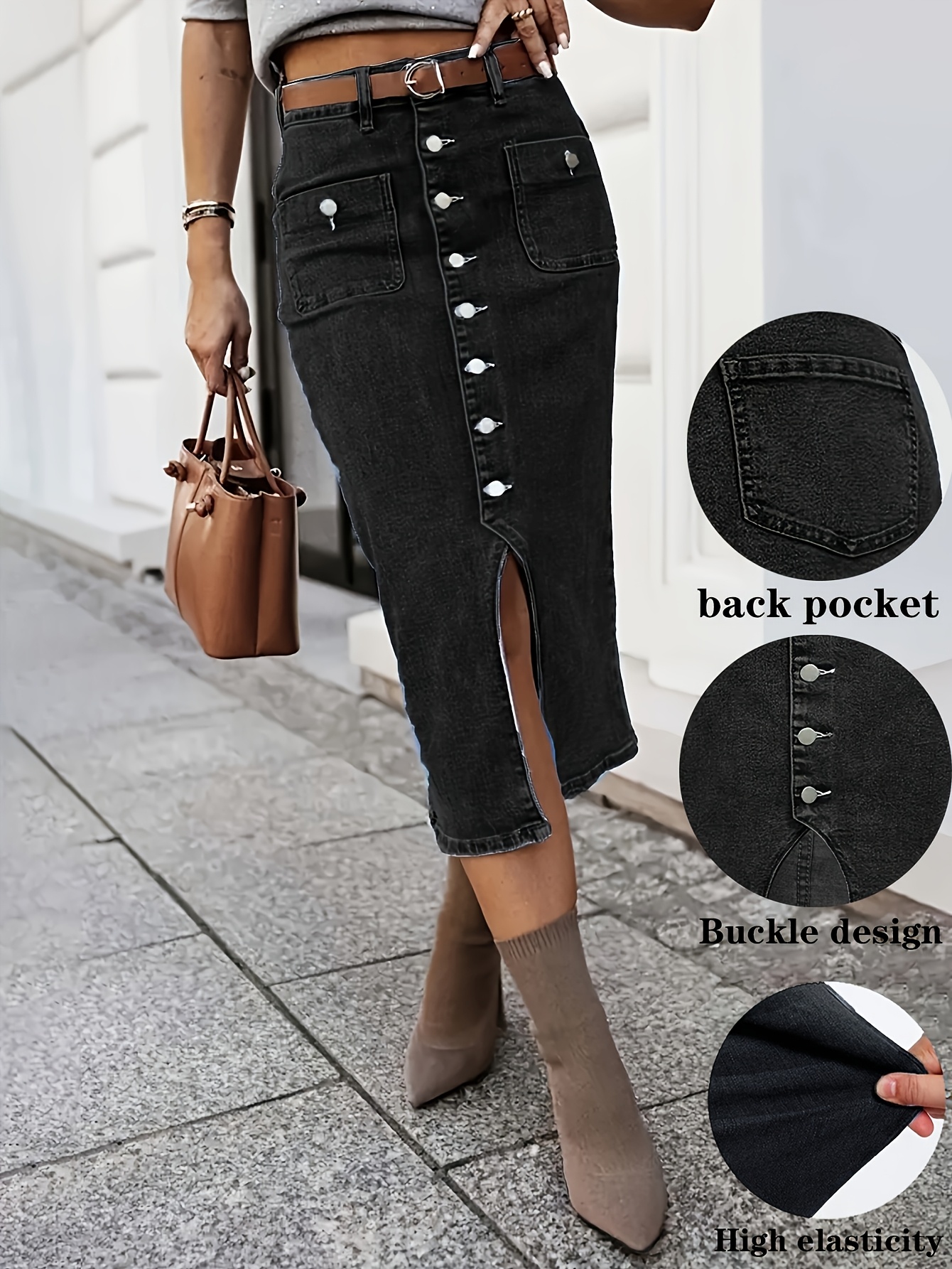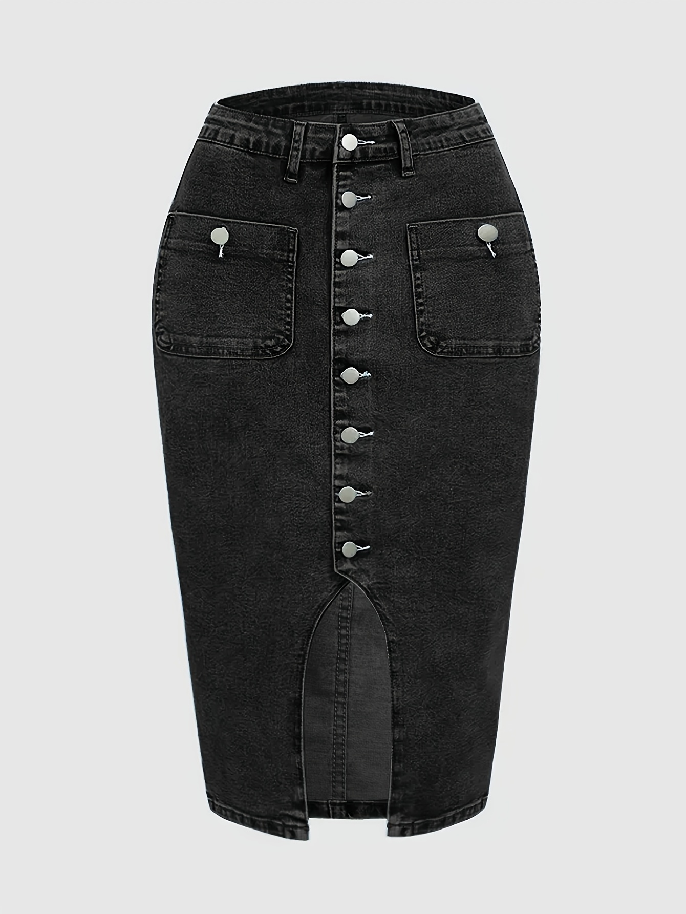 20 Febbraio 2026Gonna midi in denim casual da donna, elasticizzata, tinta unita, vita media, dettaglio bottoni, design con spacco, vestibilità regular, senza cintura, traspirante e confortevole per l’uso quotidiano in primavera, estate e autunno