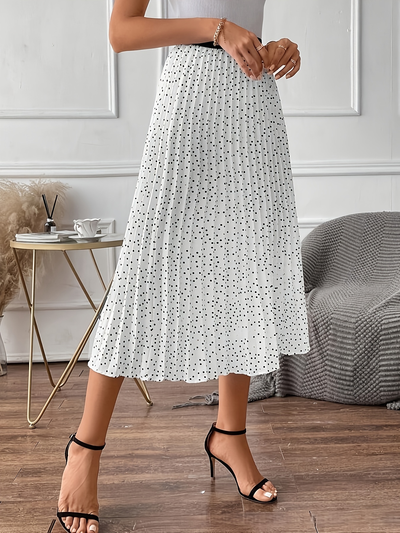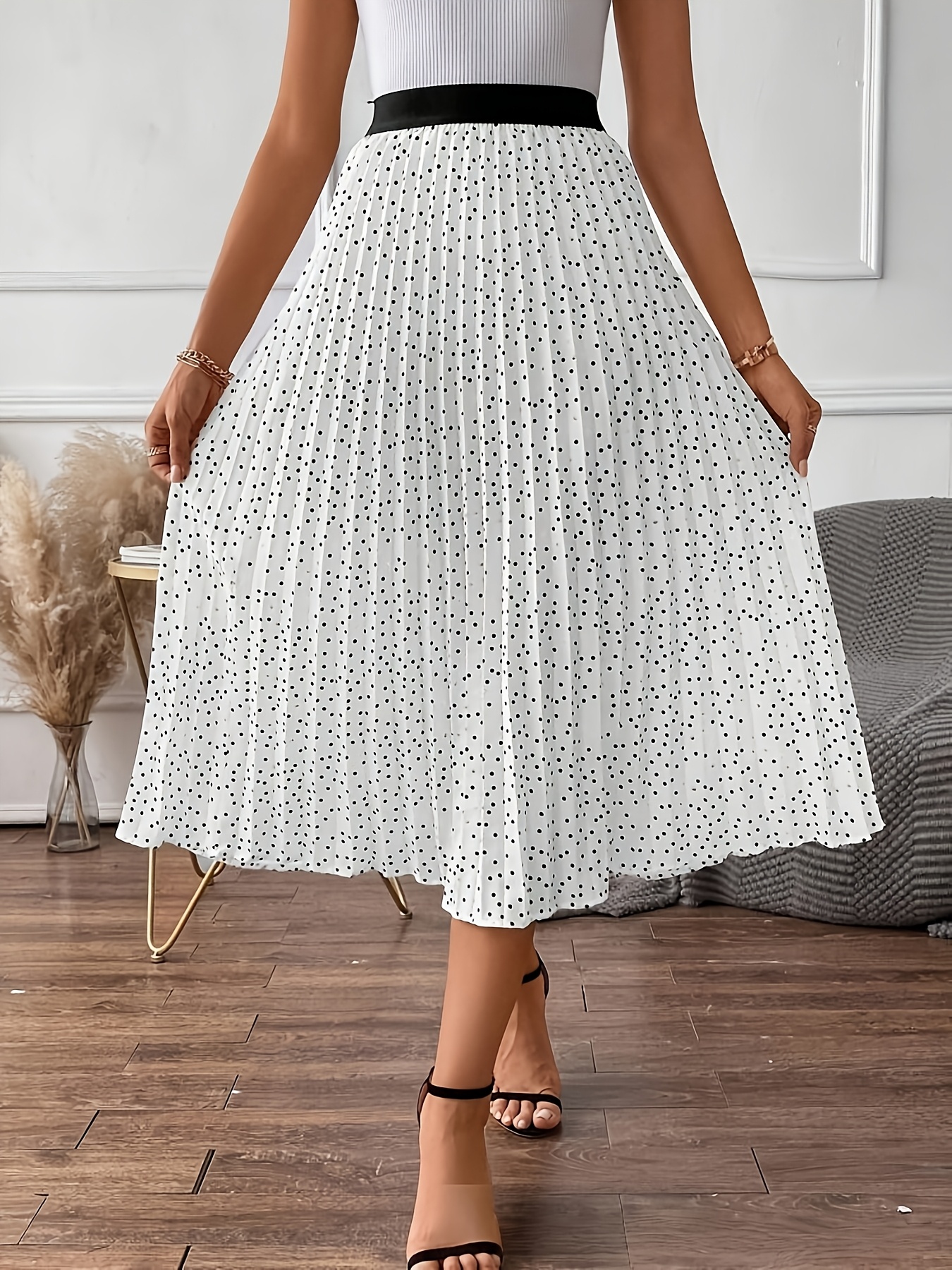 2 Marzo 2026Gonna plissettata a pois, stile elegante, senza elastico in vita, ideale per primavera, estate e autunno
