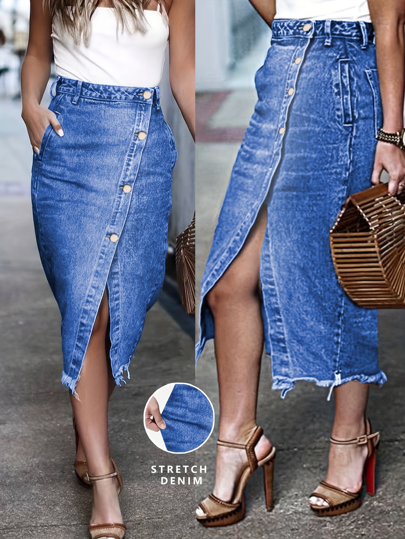 20 Febbraio 2026Gonna vintage anni 90 Y2K alta vita – denim lavato azzurro chiaro, materiale stretchy non trasparente, senza cintura lunghezza media per casual, formal, resort outfits – lavabile a macchina retro A-Line gonna, attire formal, detailing slit, stitching di qualità, per fashion lovers