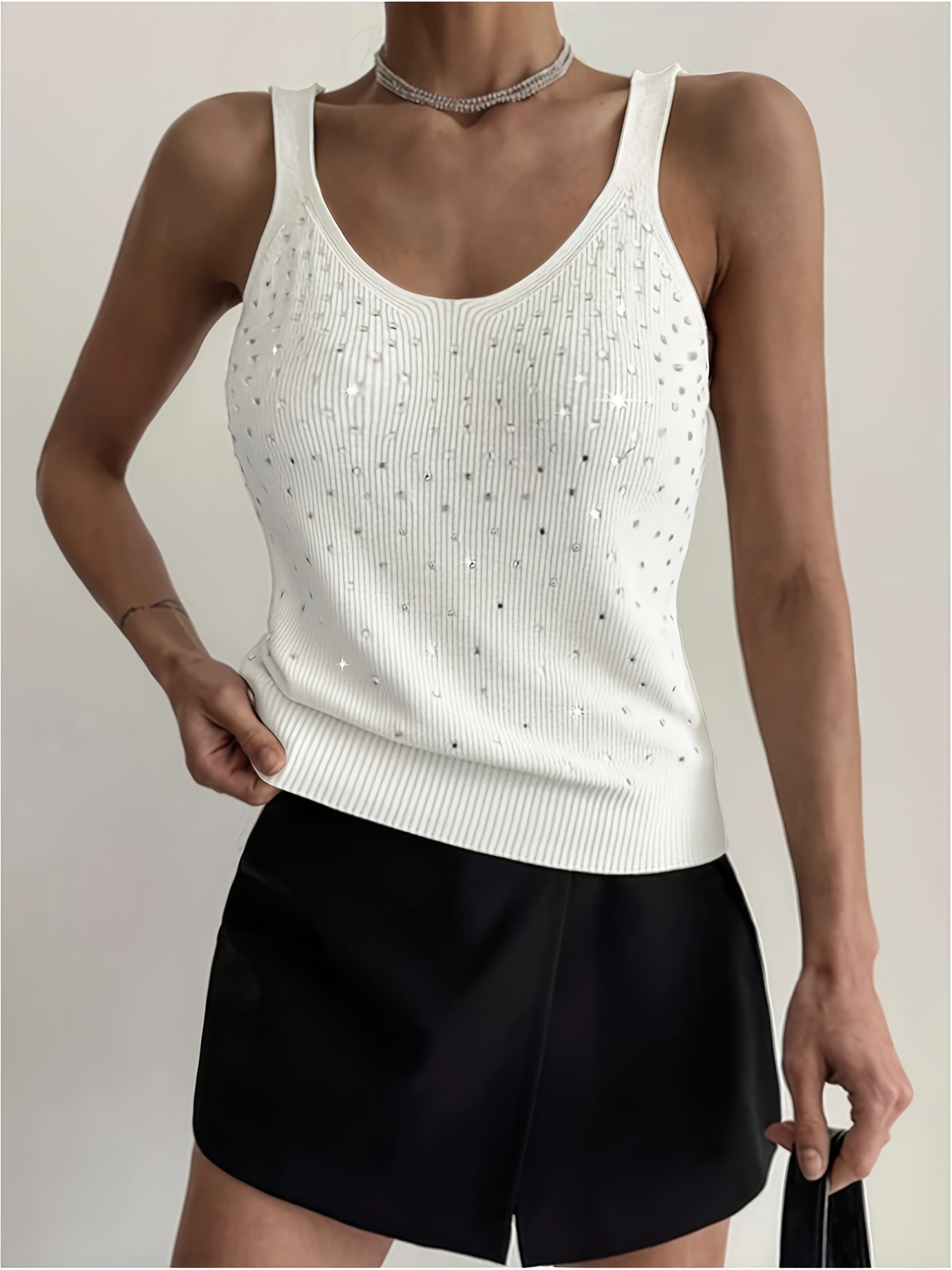16 Aprile 2026Maglia Comoda Canotta Elegante Senza Maniche con Strass per Donna – Colore Unico, Taglio Regolare, Lavabile in Lavatrice, Ideale per Look Casual e Raffinati Primavera Estate Autunno,