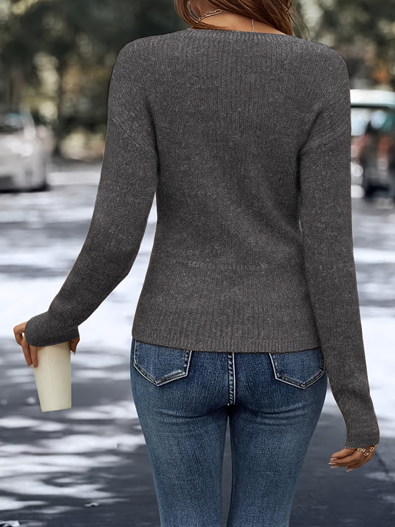 Maglia Top elegante a croce per donna, con bottoni decorativi