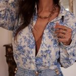 Camicia a maniche lunghe con stampa floreale – Motivo bambù azzurro chiaro, traspirante e morbida