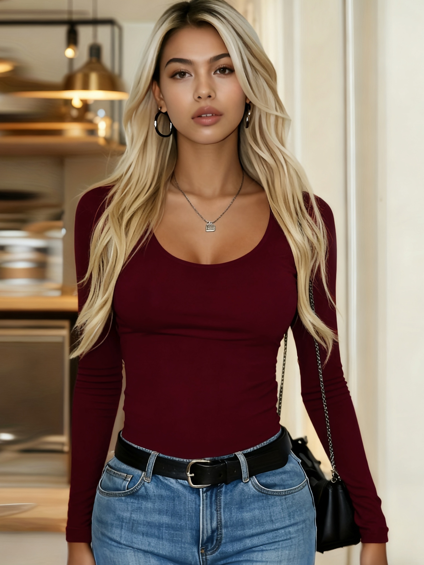 16 Aprile 2026Maglia Donna Collo Tondo Manica Lunga Slim-Fit, T-Shirt Monocolore, Stile Versatile Essenziale, Tessuto Elasticizzato, Lavabile in Lavatrice e a Secco, Abbigliamento Donna, Top Donna