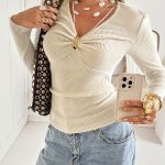 Maglia Elegante T-Shirt a Maniche Lunghe con Bottoni