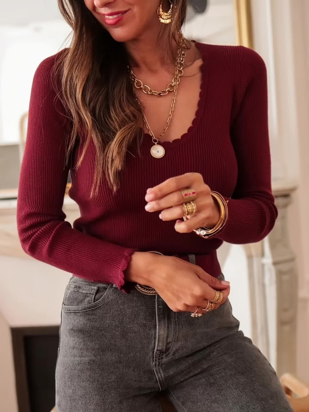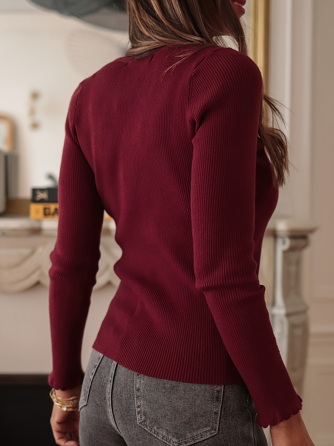 21 Febbraio 2026Maglia Morbido Pizzo Elegante Scollo a U e Scollo a V Profondo, Sexy, Tinta Unita, Versatile, Aderente, Base, Maglione in Filato Core-Spun, Adatto per Natale, Capodanno e San .