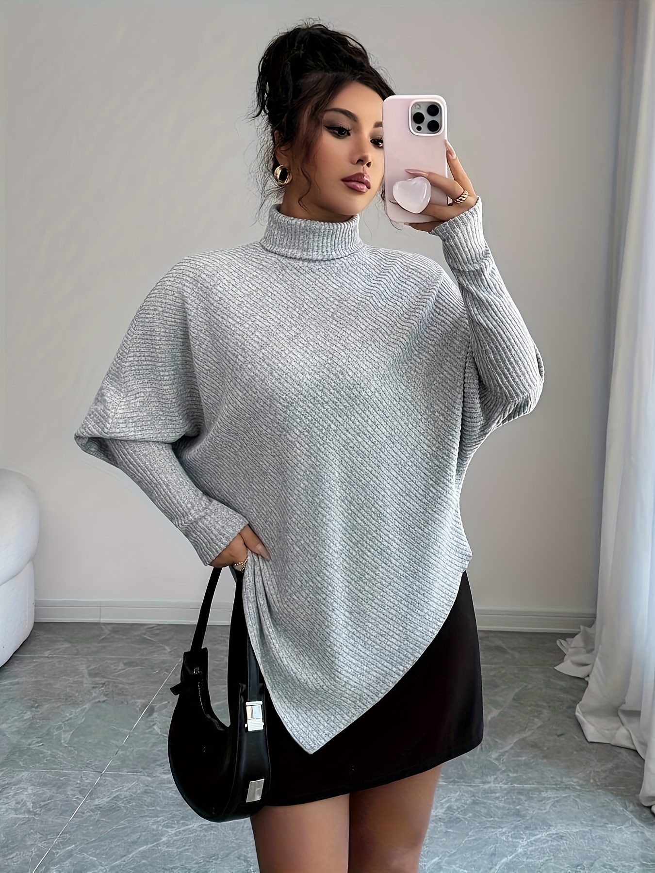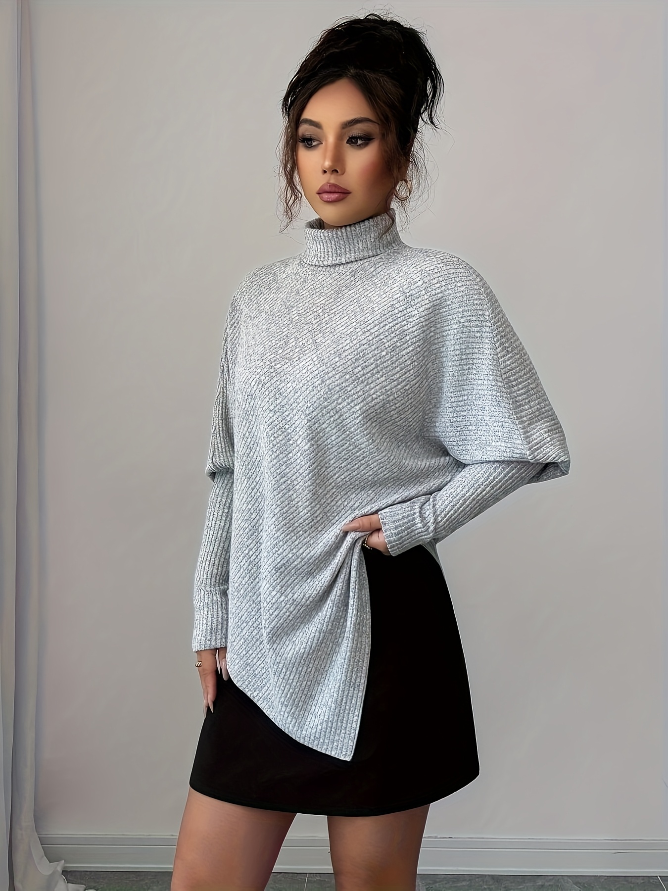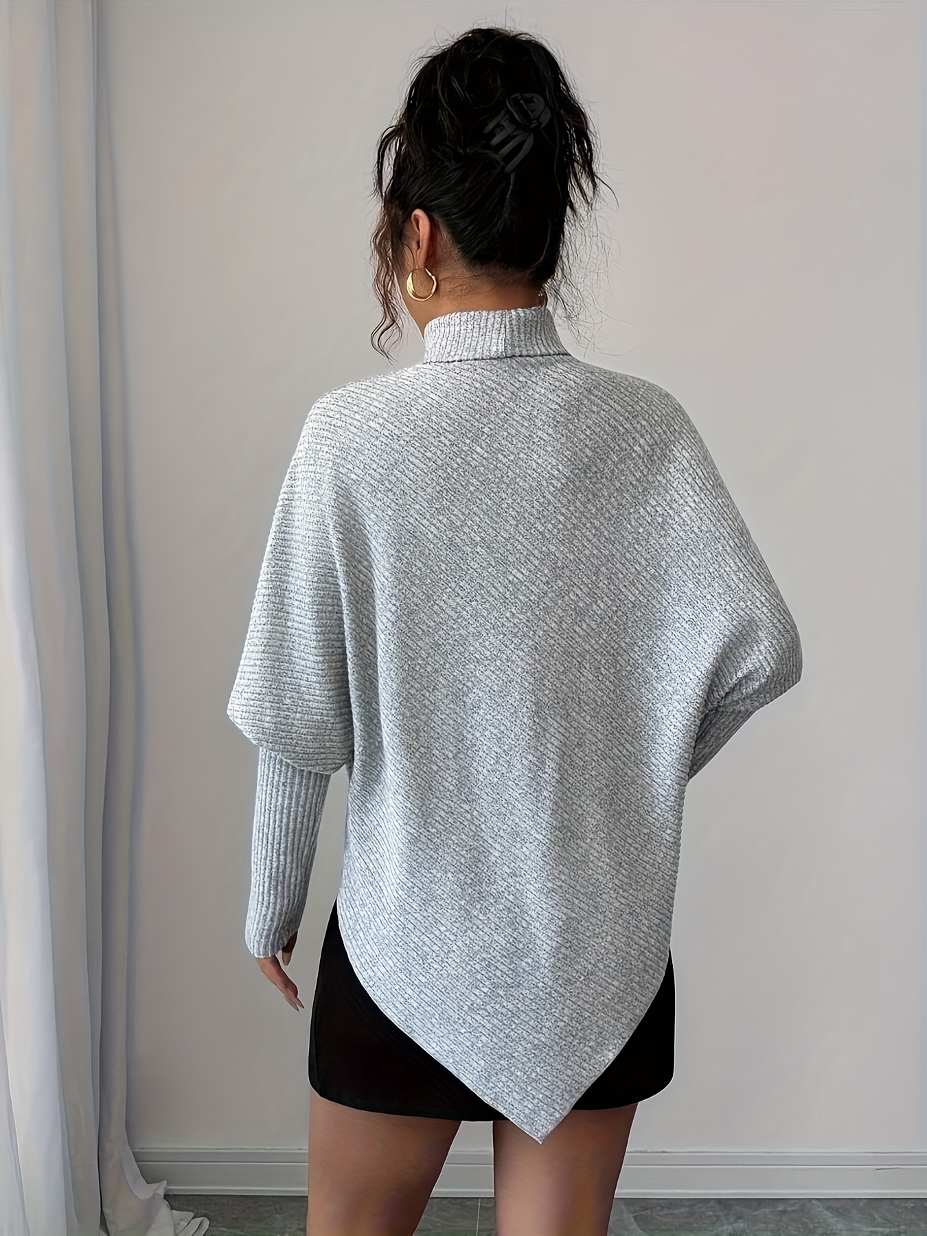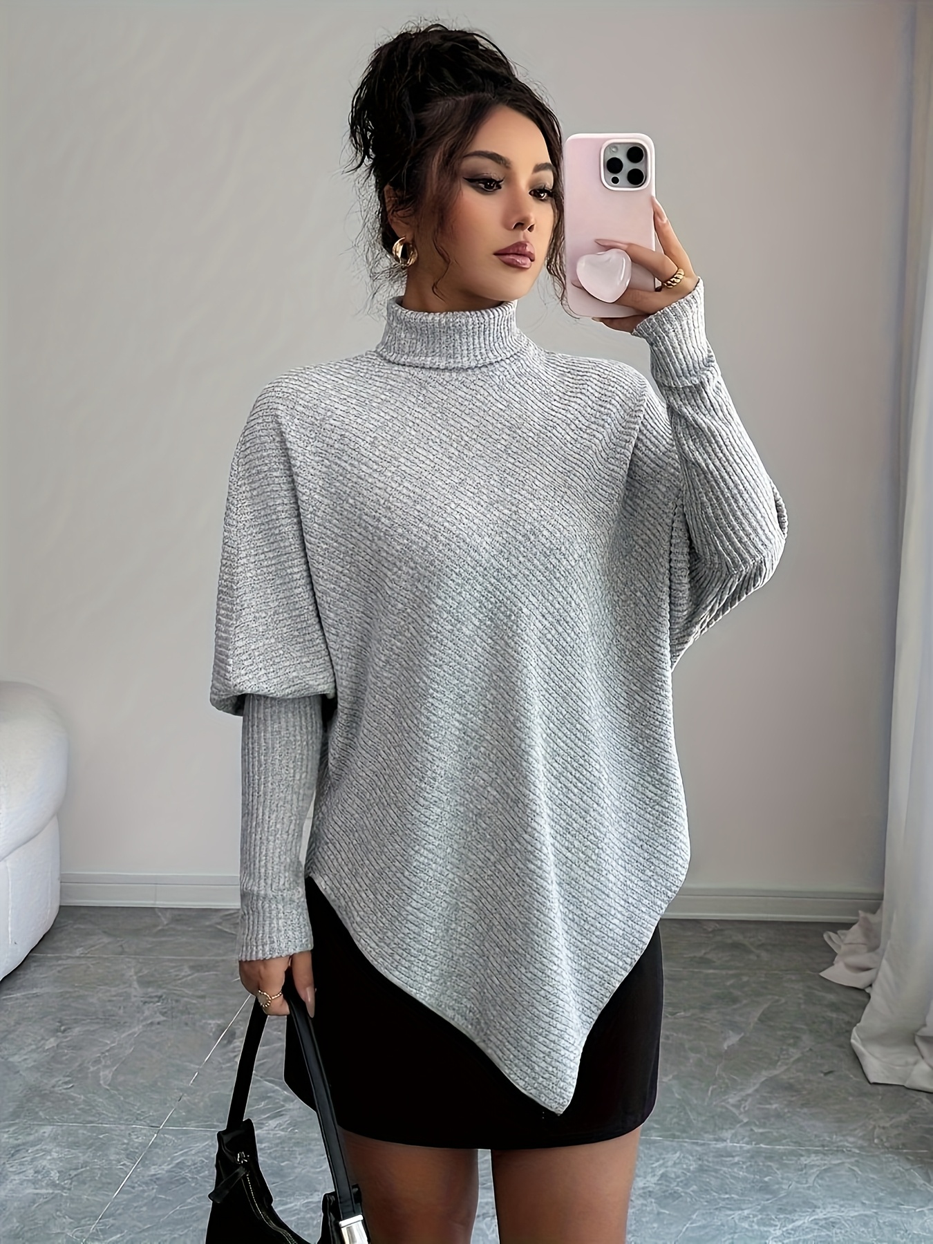 16 Febbraio 2026Maglietta a girocollo alto, grigia autunno-inverno, design irregolare per un look chic e casual