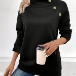 Maglione Slim a Maniche lunghe con bottoni Eleganti con Collo alto tinta Unita
