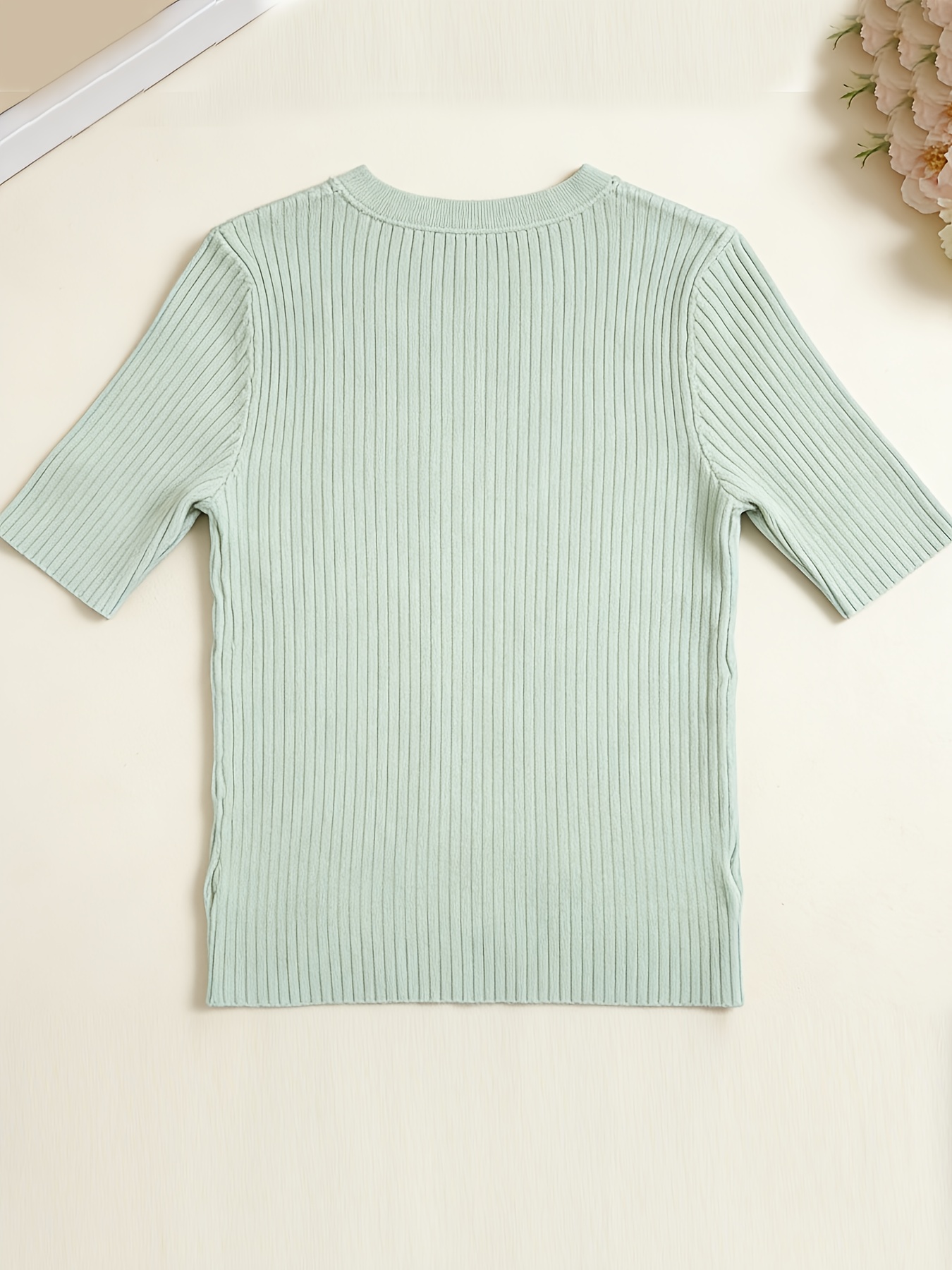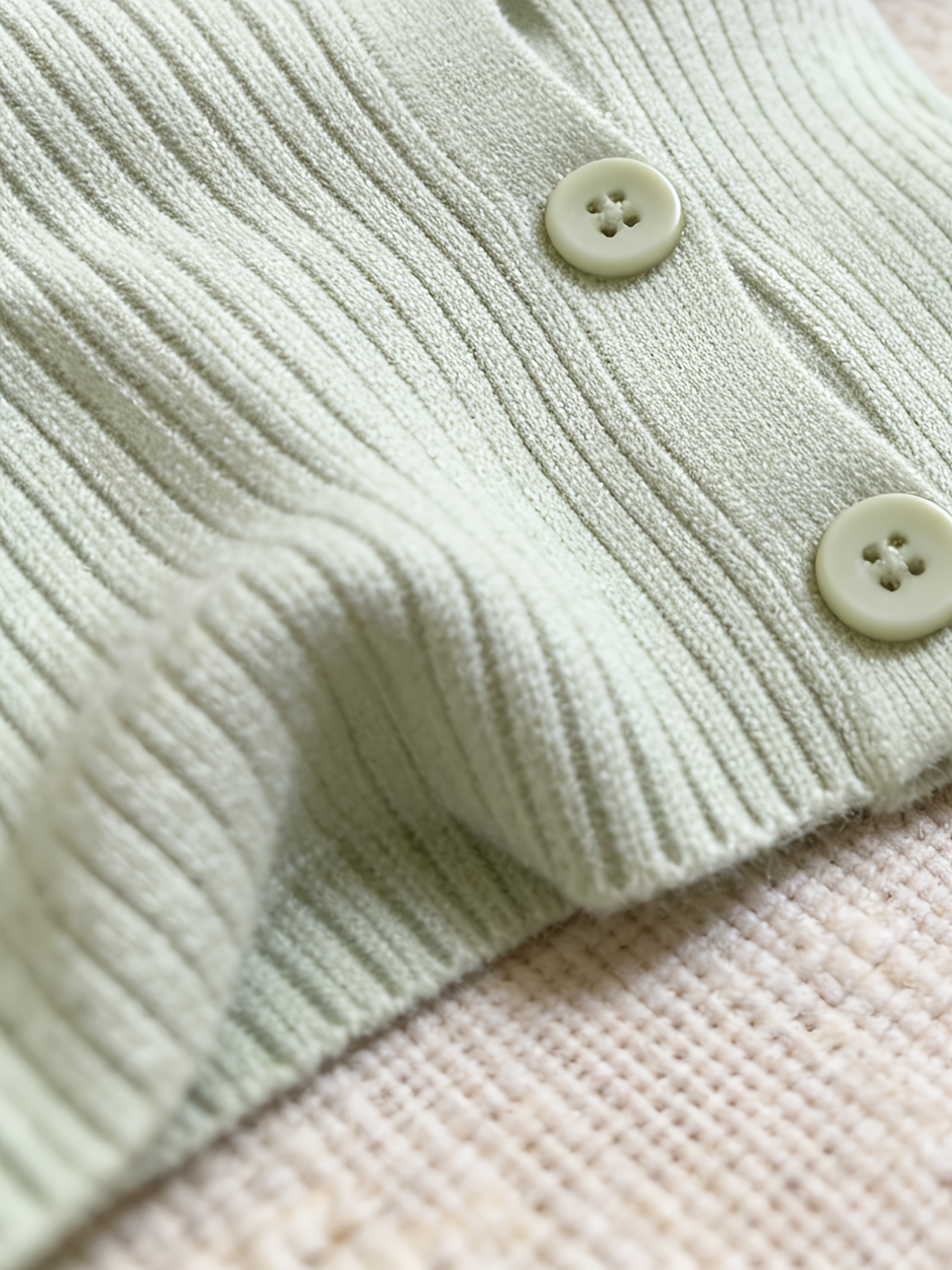 15 Aprile 20262026 Primavera/Estate Nuova Maglietta Donna Stile Francese Semplice Scollo a V Maniche Corte Cardigan a Costine Slim Fit Corto Monopetto Top Casual per Pendolari