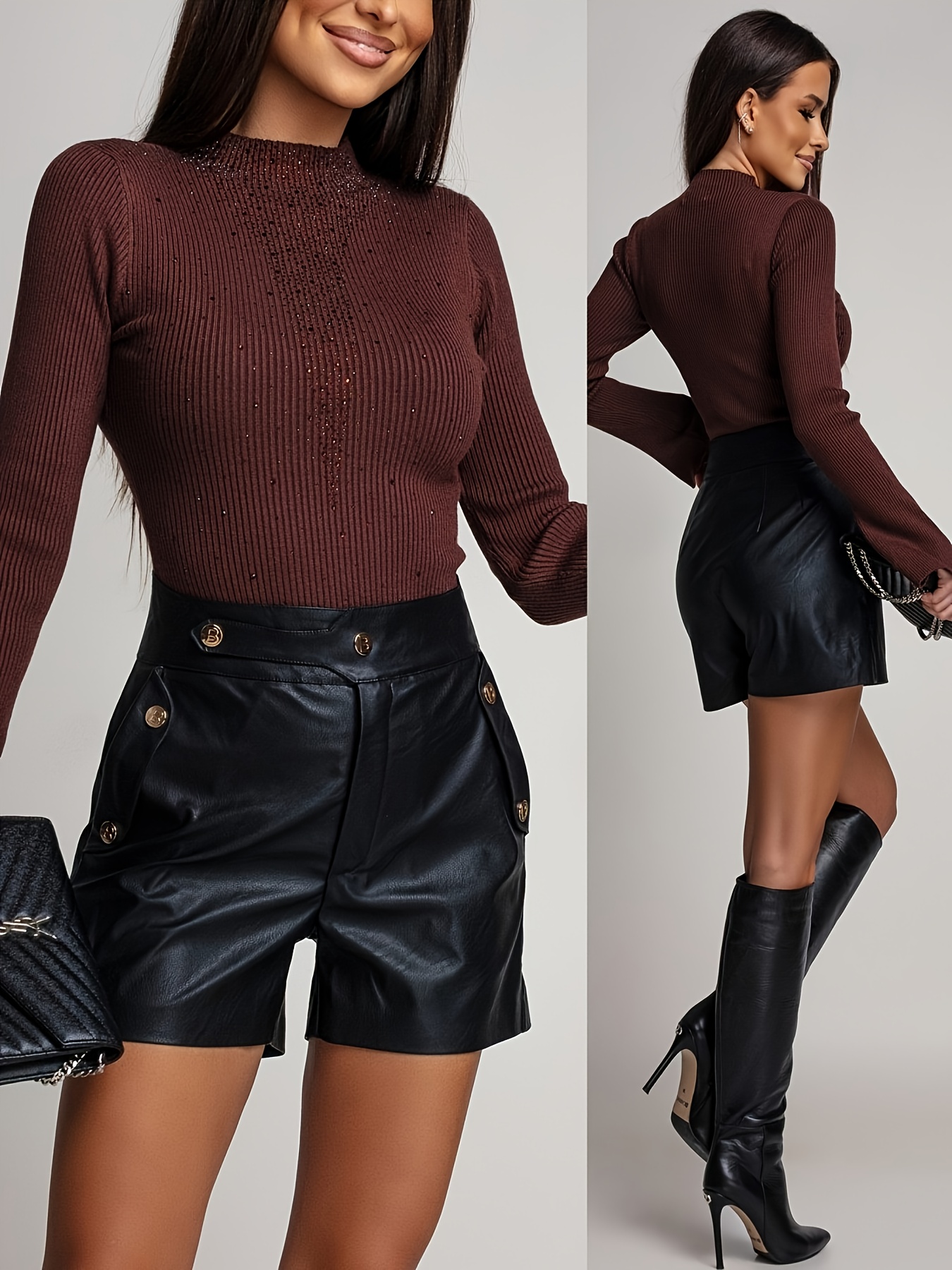 20 Febbraio 2026Magletta Elegante da Donna Primaverile Marrone a Costine con Decorazioni a Diamante – Tessuto Morbido – Adatta per il Pendolarismo Quotidiano, Lavoro e Uscite – San Valentino – Regalo di Capodanno