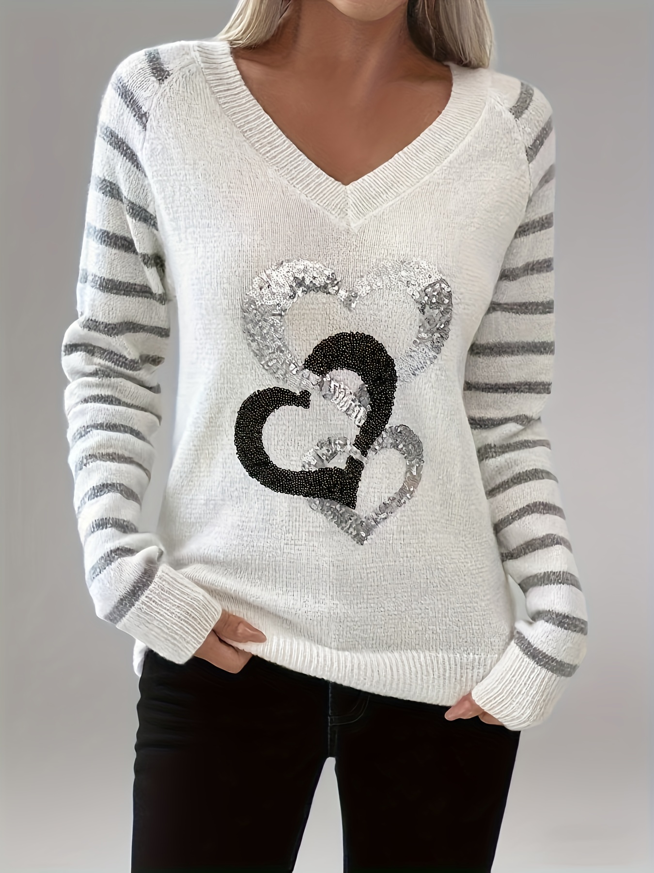 5 Gennaio 2026Maglione a V con Maniche Lunghe Raglan a Righe