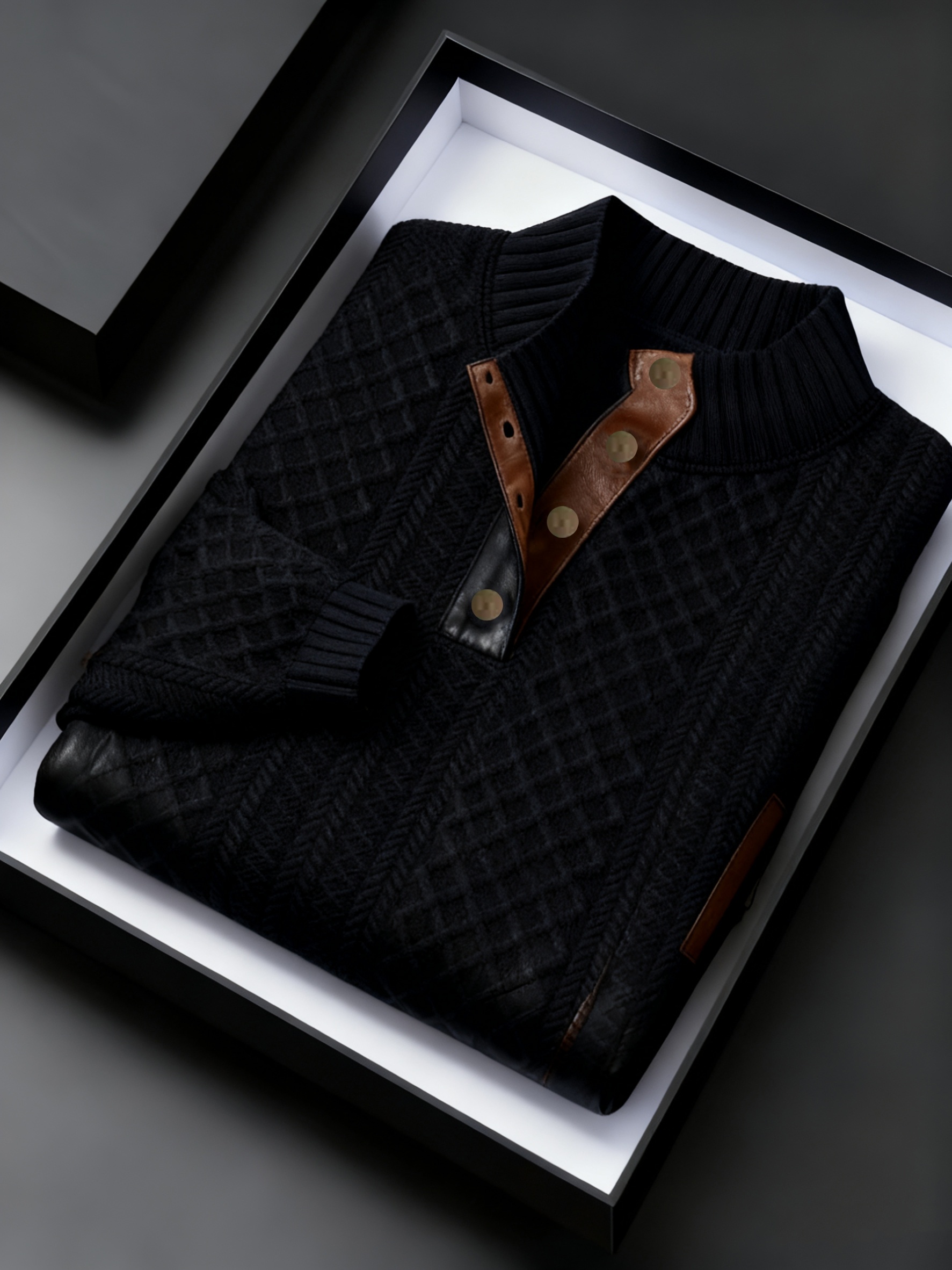 28 Gennaio 2026Maglione da uomo Pearson OBM in maglia con motivo a diamanti in stile vintage e patchwork in pelle, collo alla coreana, apertura frontale semiaperta, decorazione con patch in pelle sul gomito, maglione casual caldo ed elegante per l’autunno e l’inverno