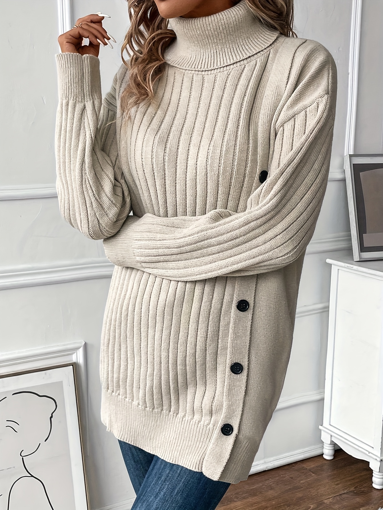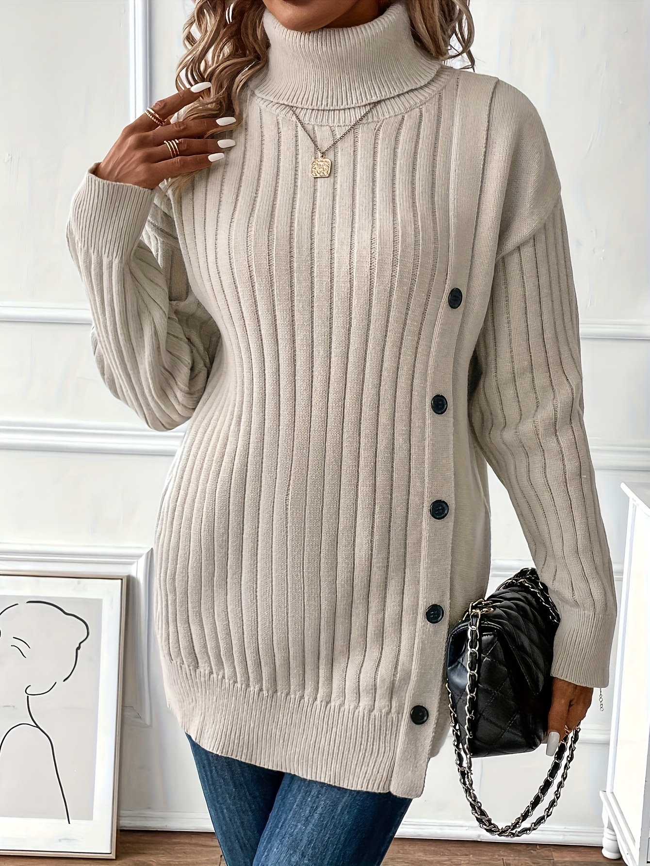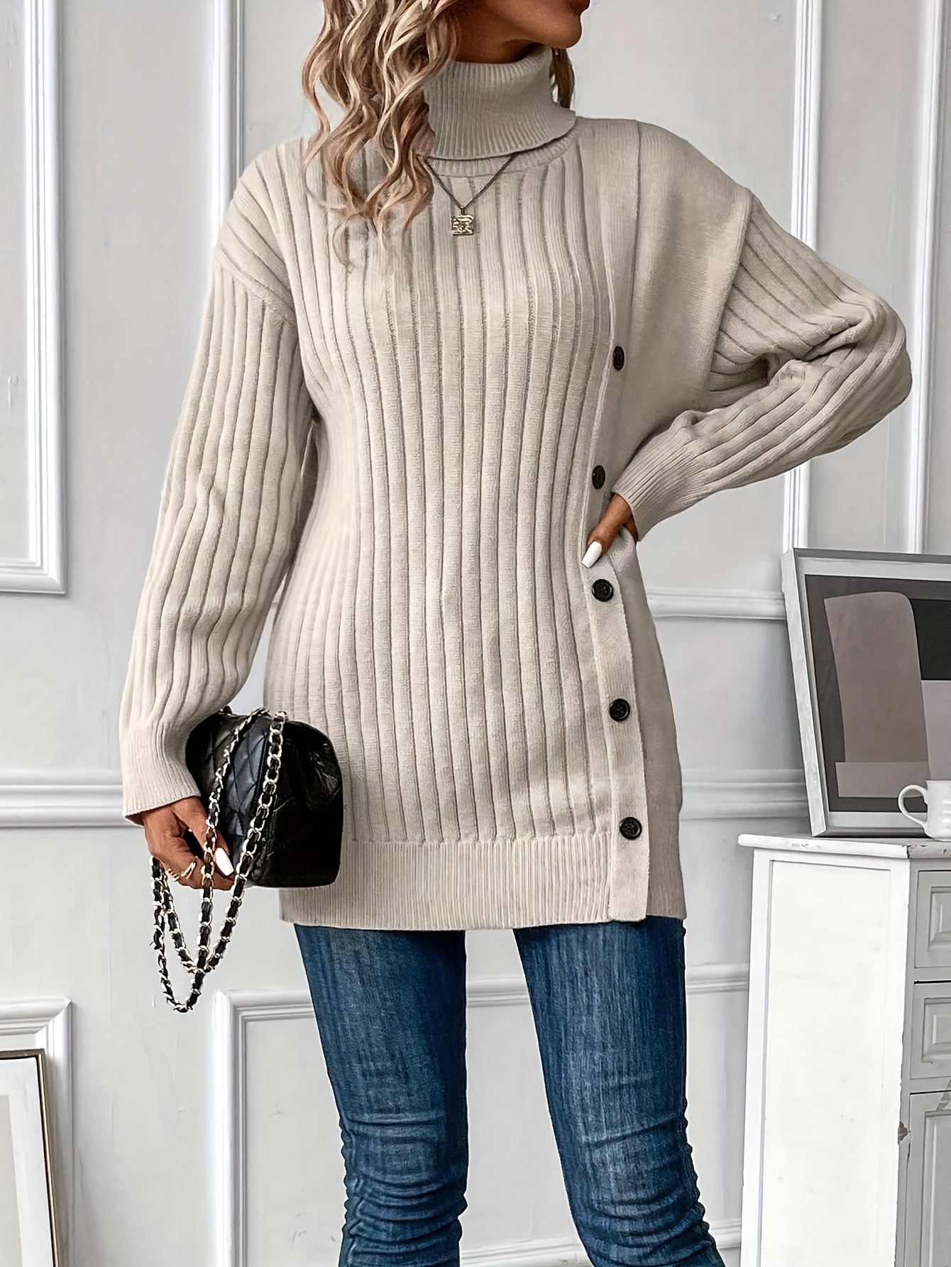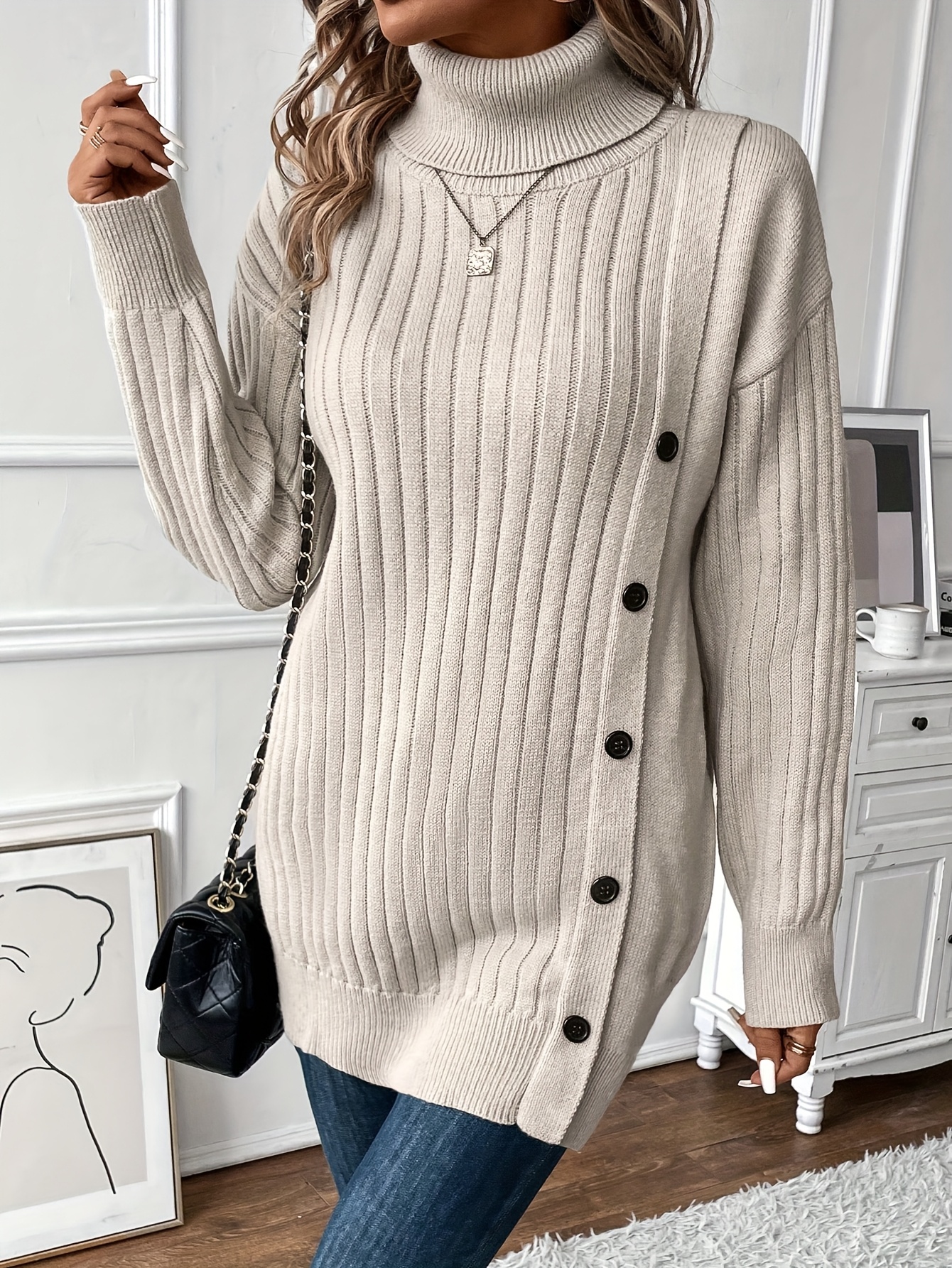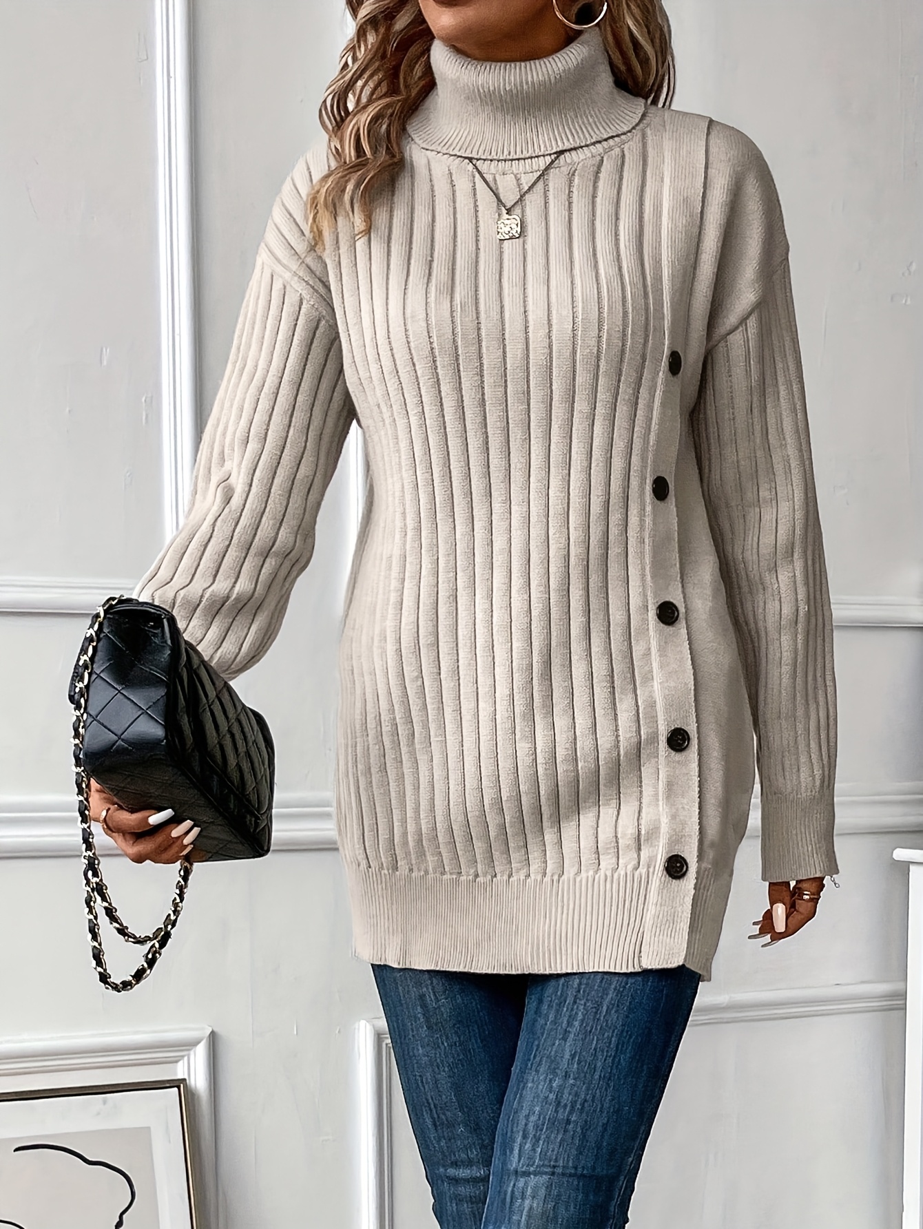 26 Gennaio 2026Maglione Elegante a Collo Alto, Maniche Lunghe