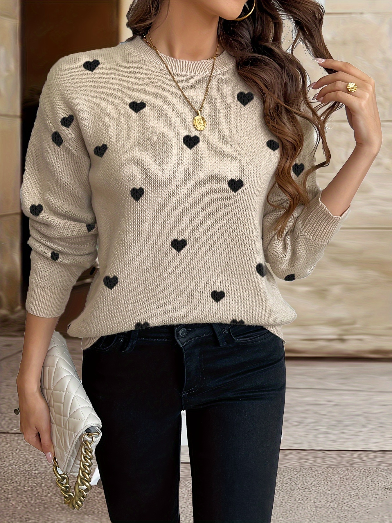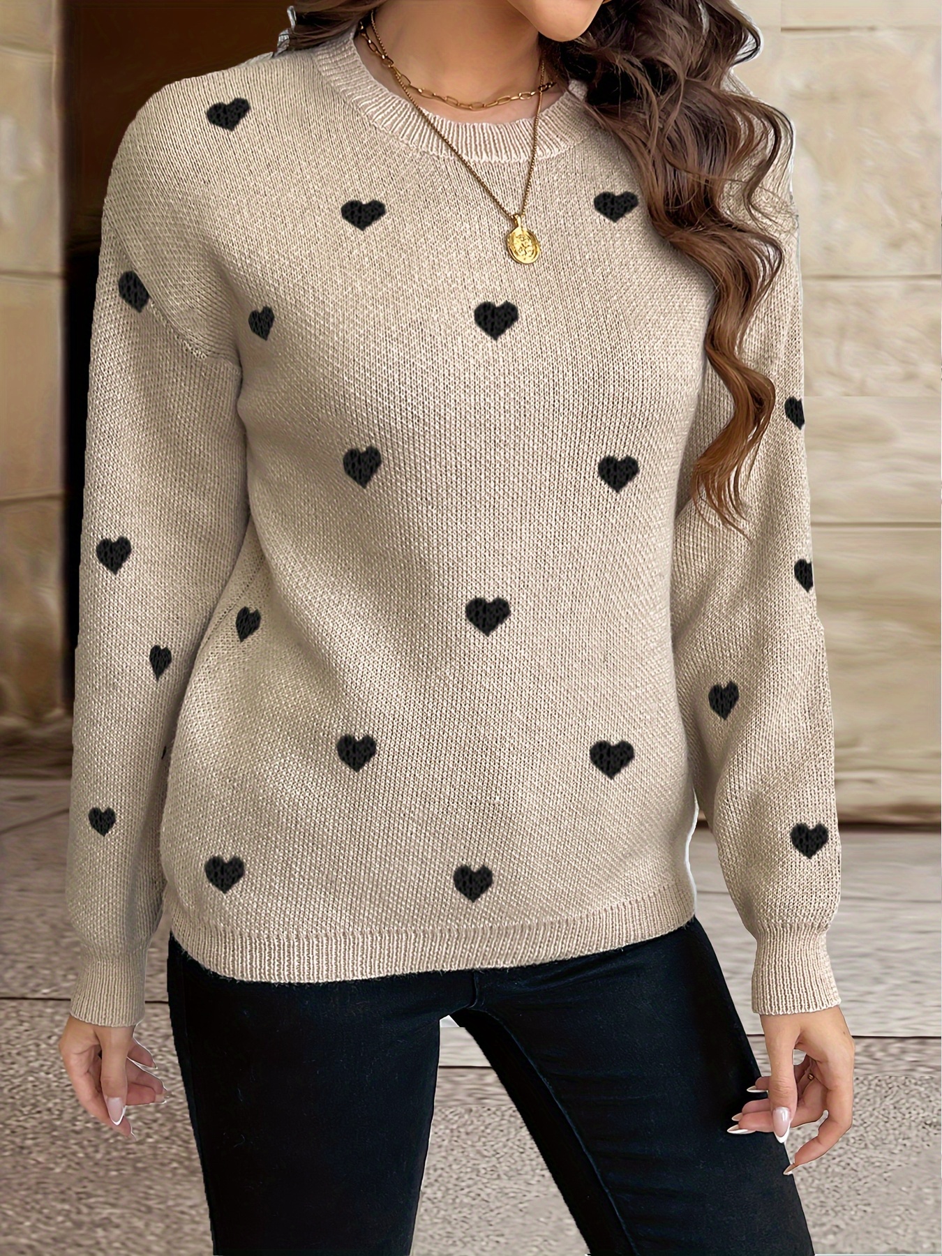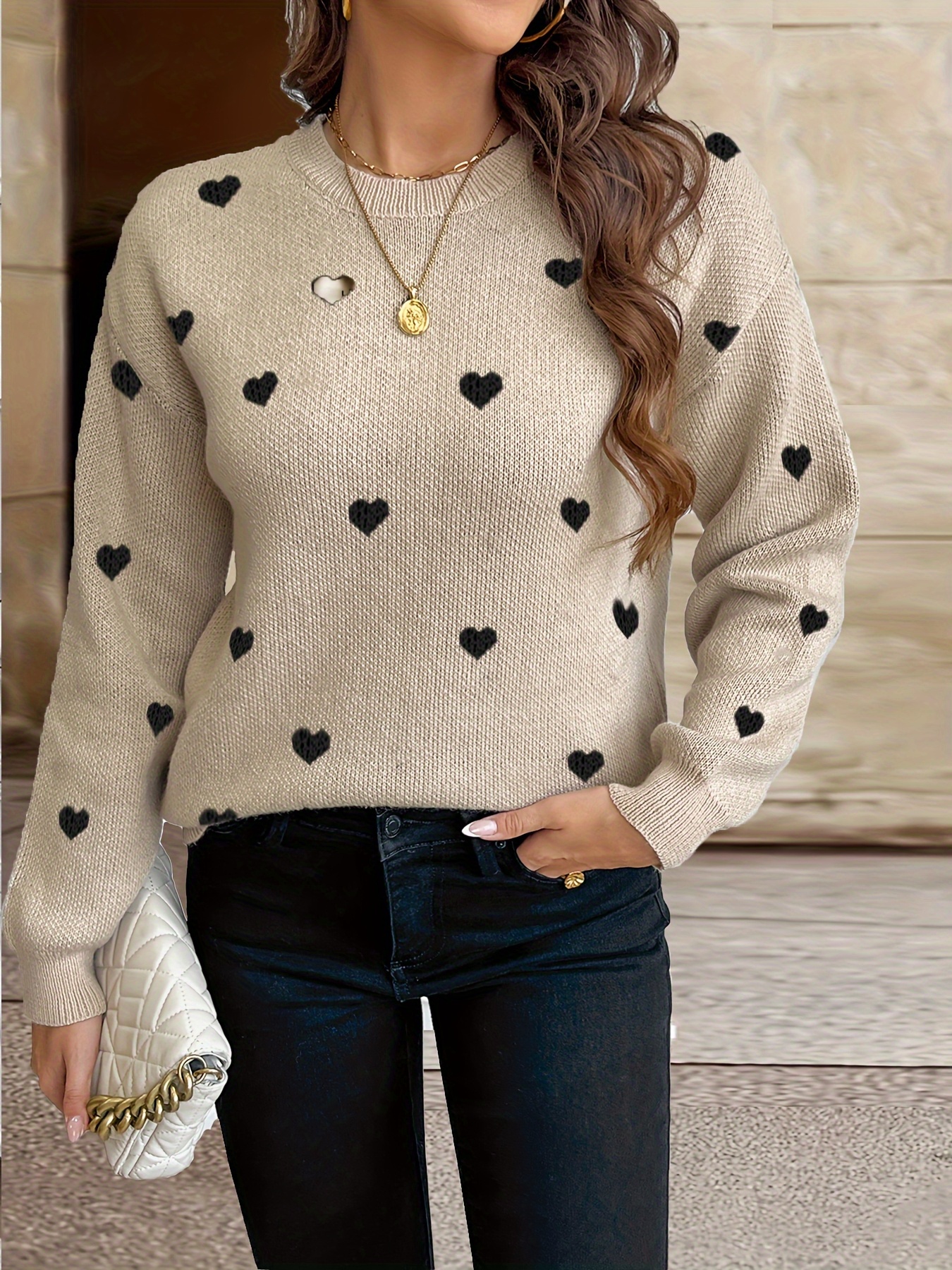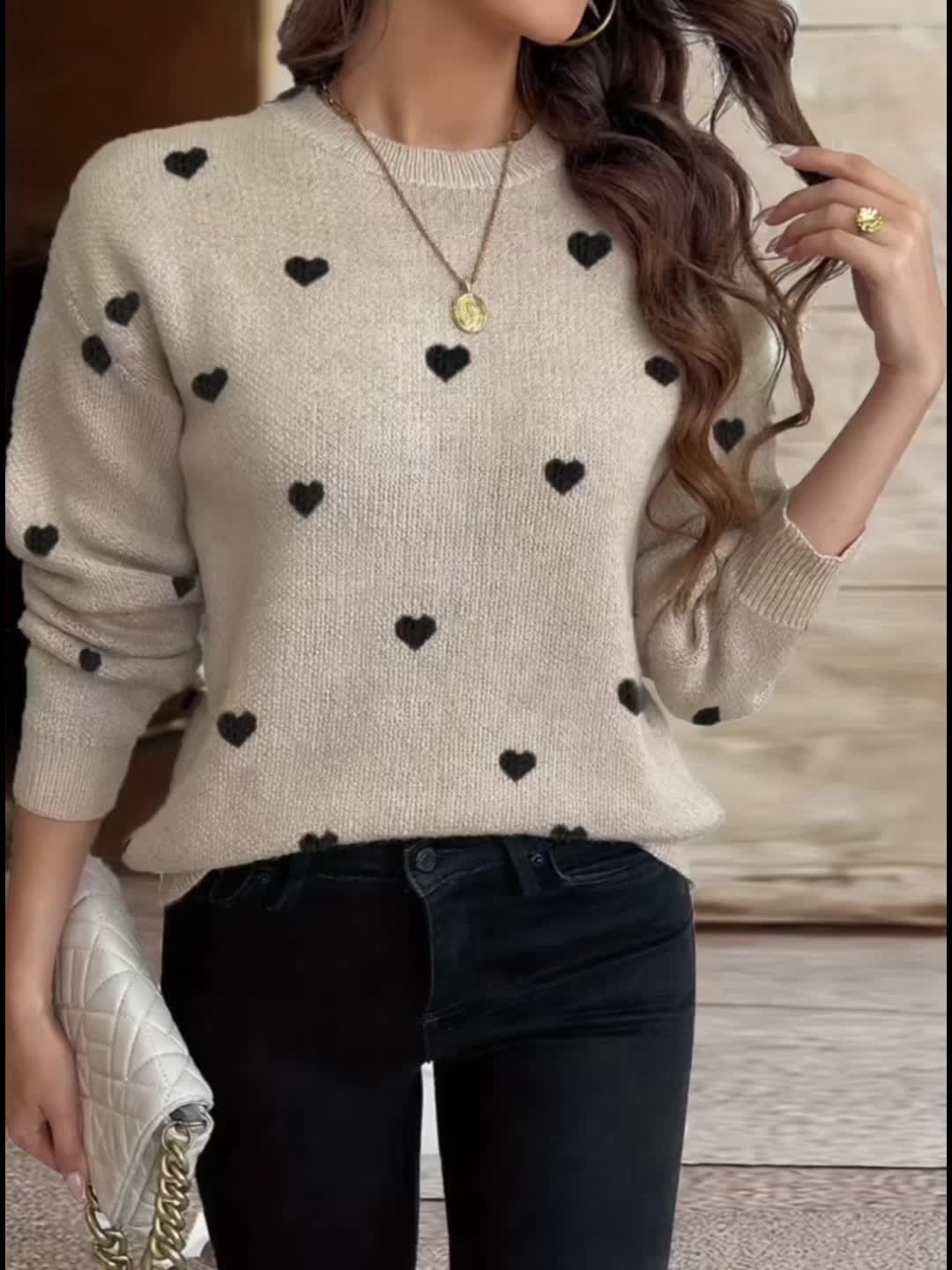 16 Febbraio 2026Maglione girocollo con cuore, maniche lunghe e spalle scese, ideale per San, abbigliamento da donna per l’autunno e l’inverno