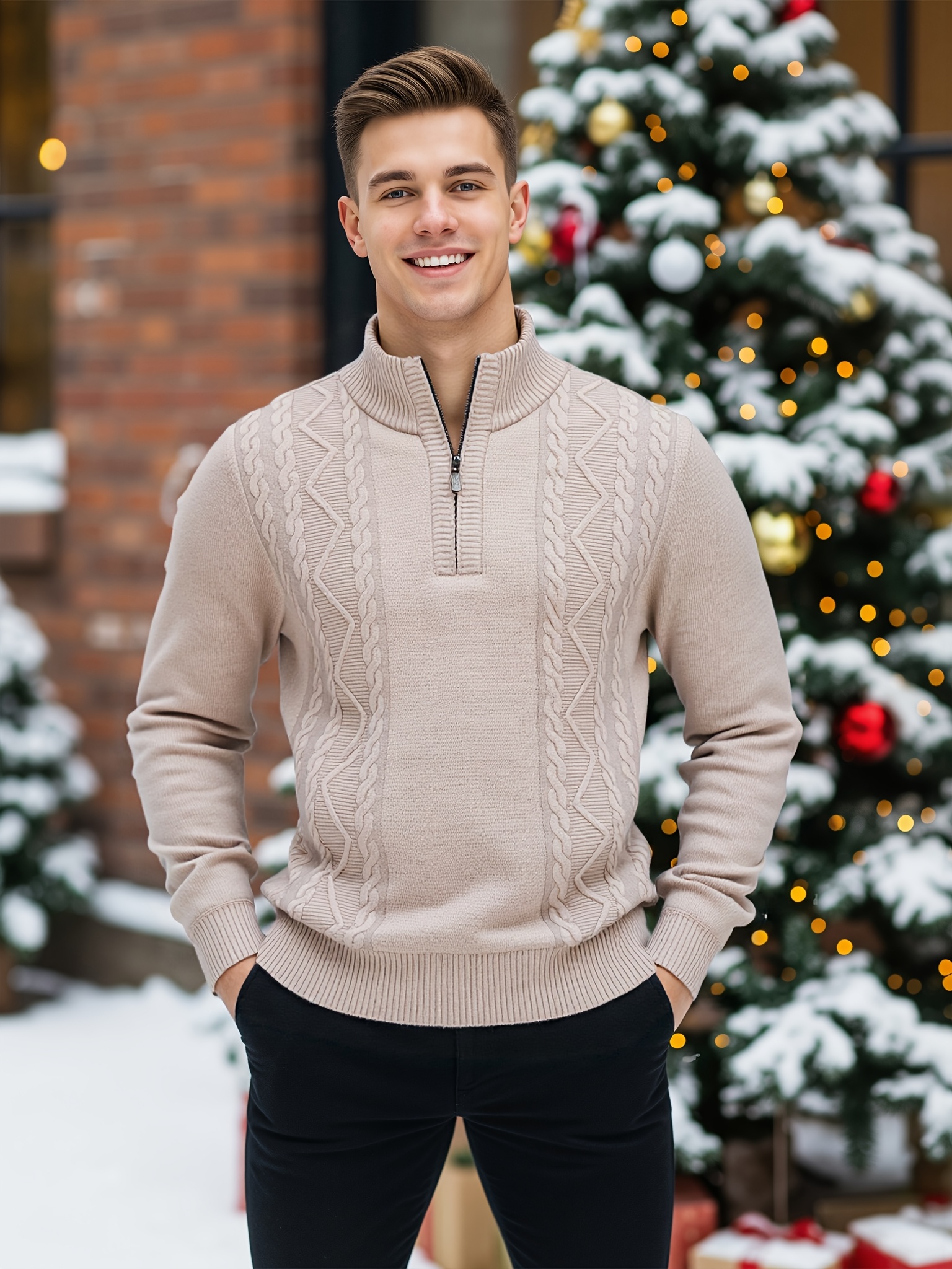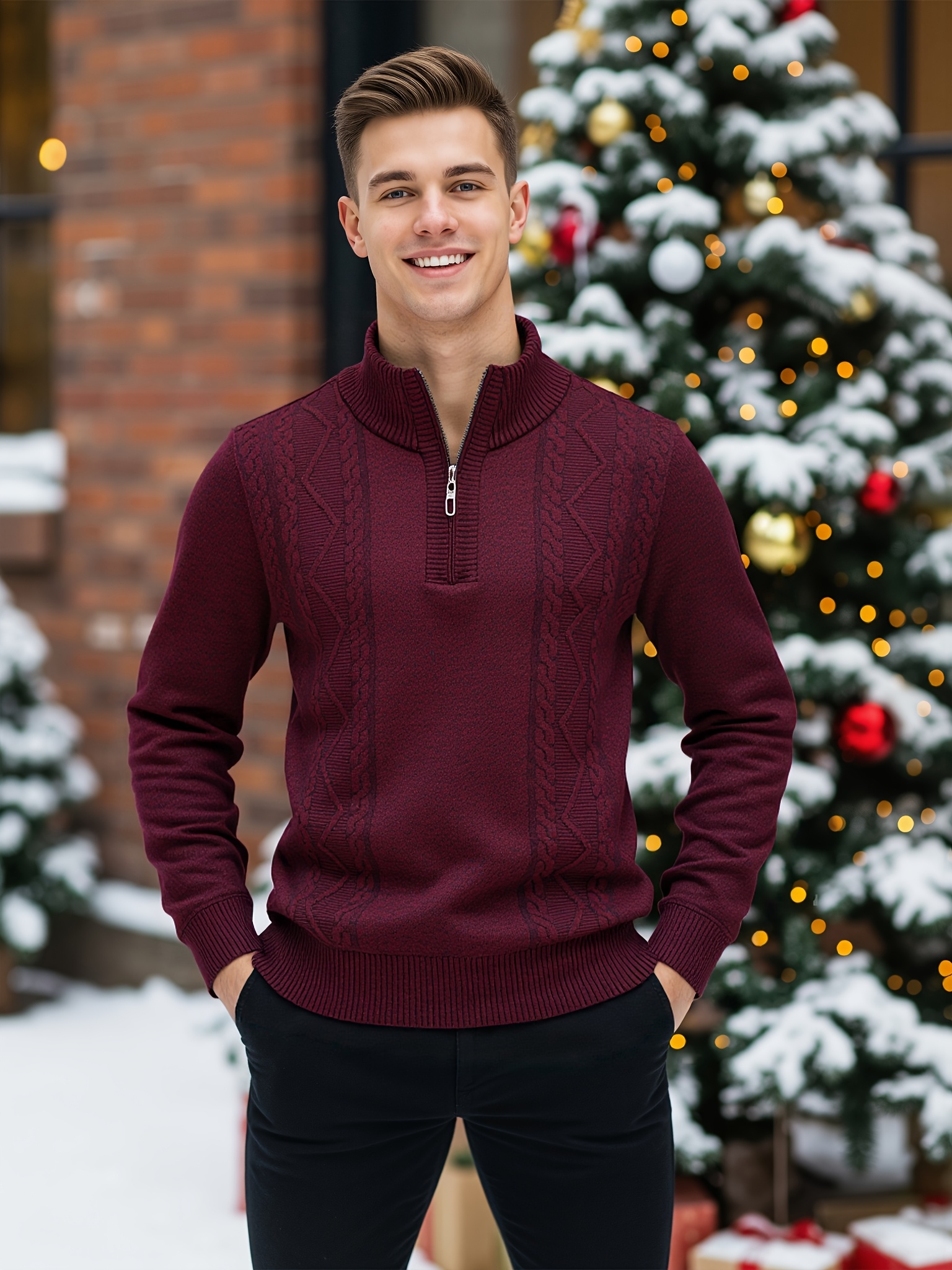 26 Febbraio 2026Maglione Invernale Caldo da Uomo | Design Tribal a Righe, Collo Alto, Tessuto Elasticizzato Medio, Mezza Abbottonatura, Maniche Lunghe, Abbigliamento Casual per il Weekend