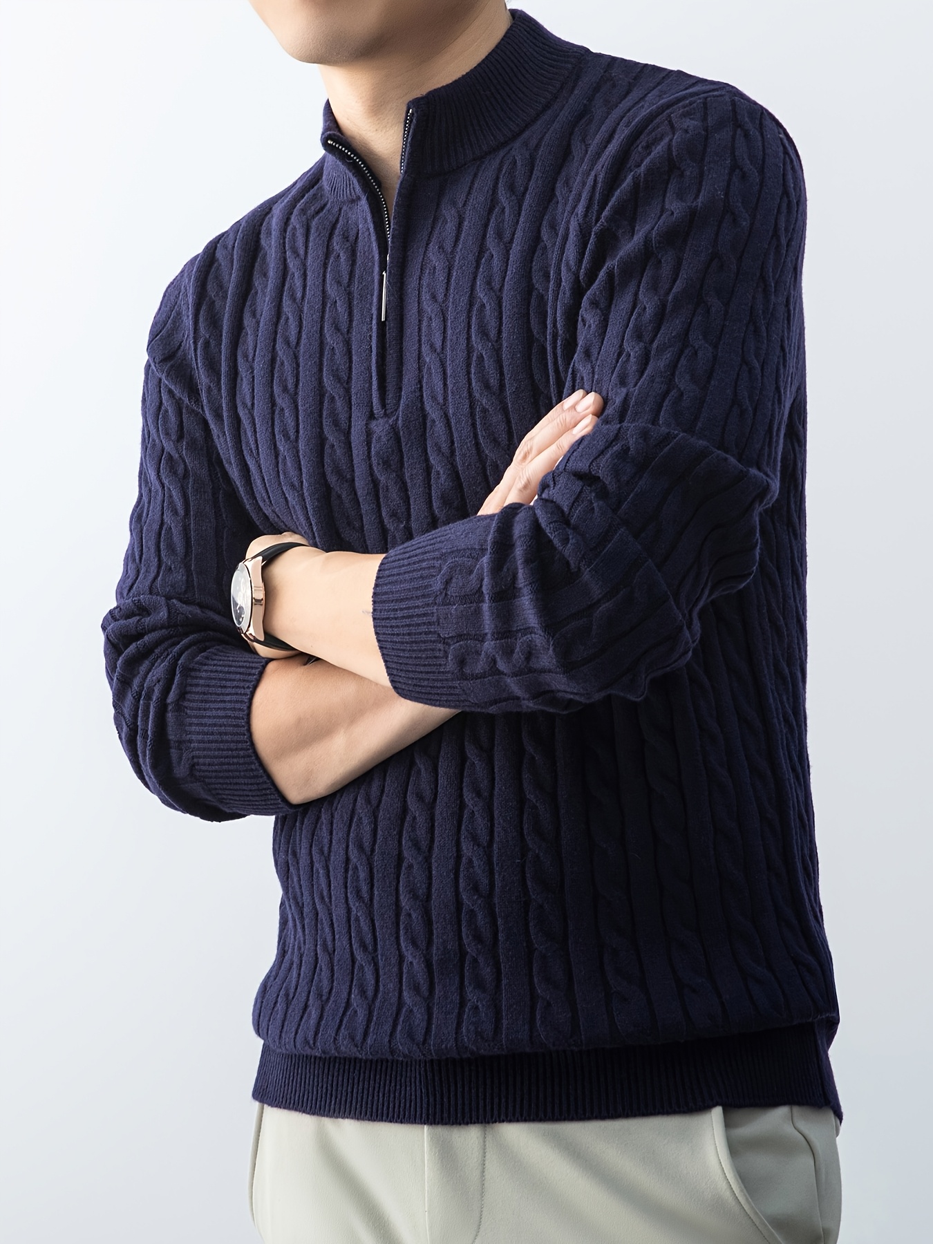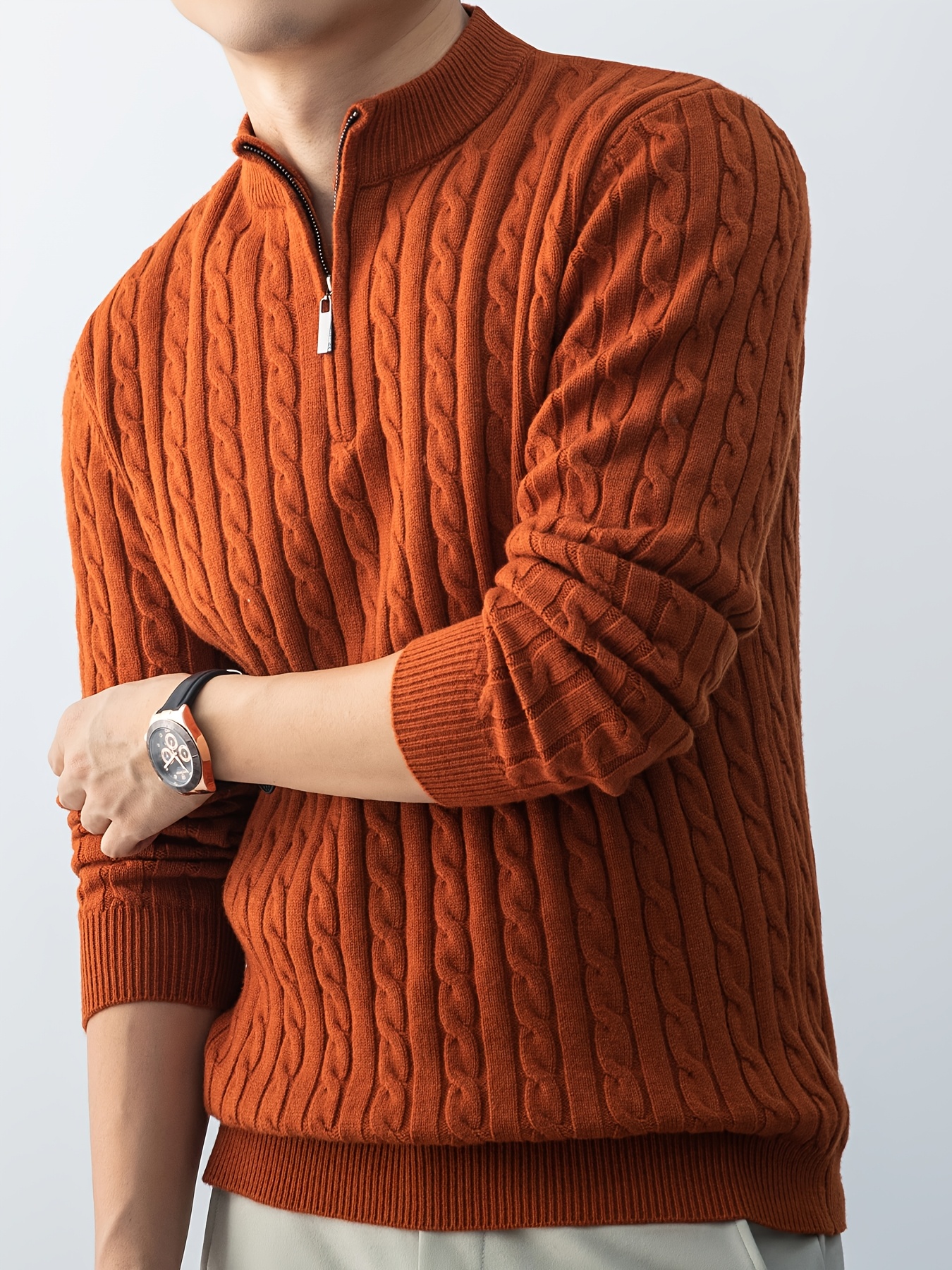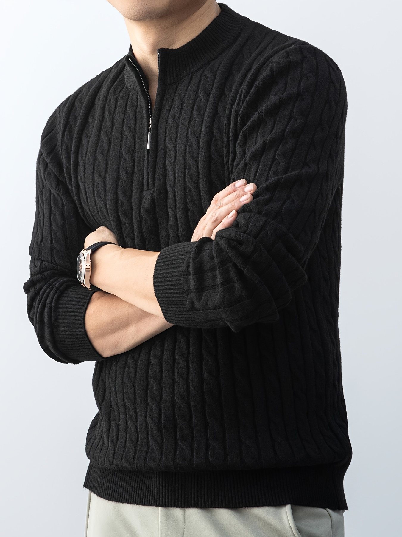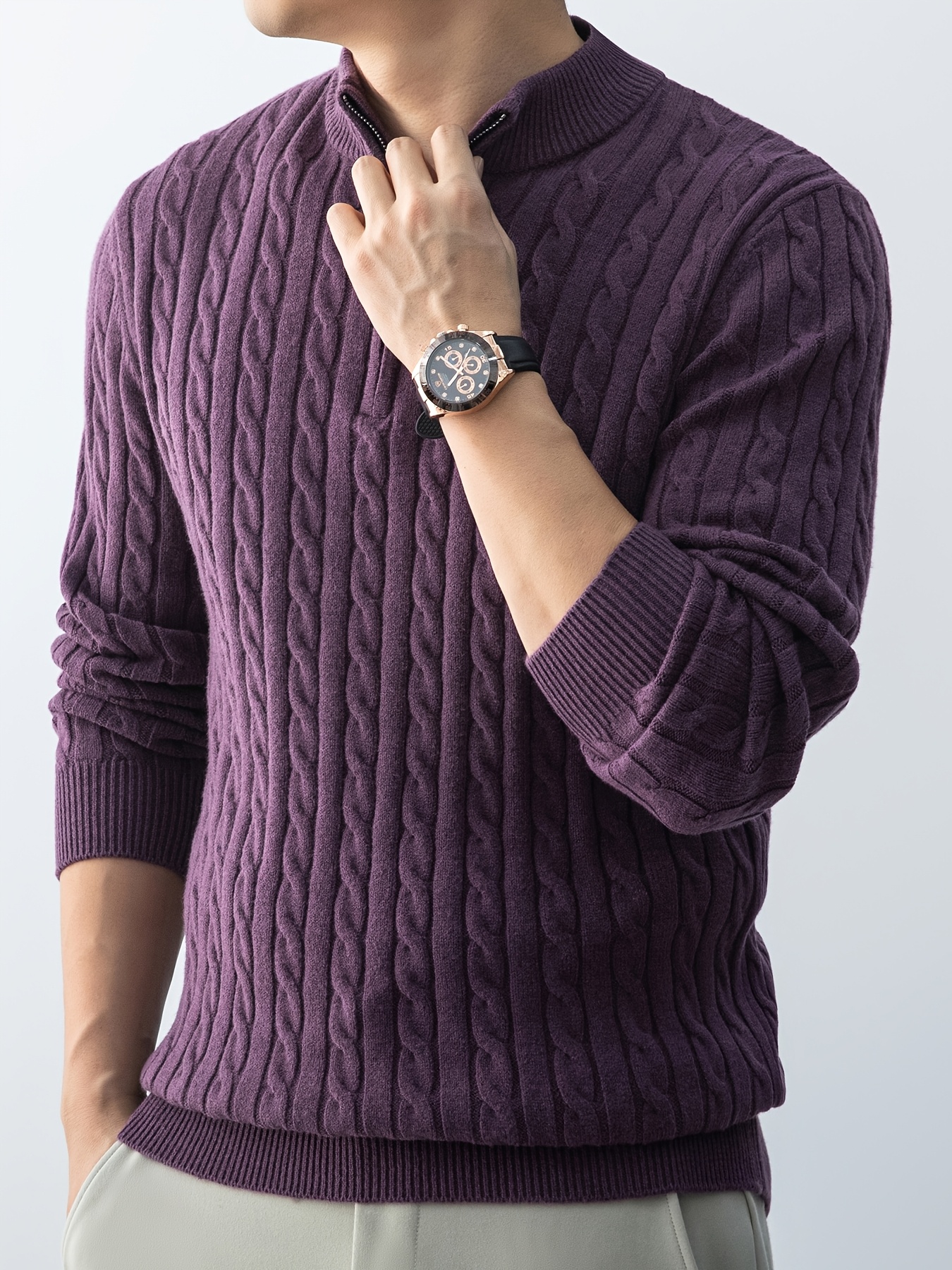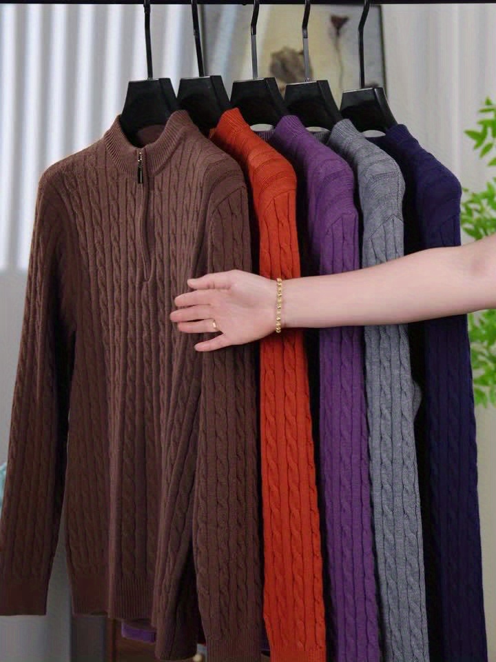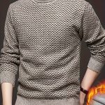 Maglione da uomo autunnale in maglia jacquard con collo alto, elegante e foderato in pile