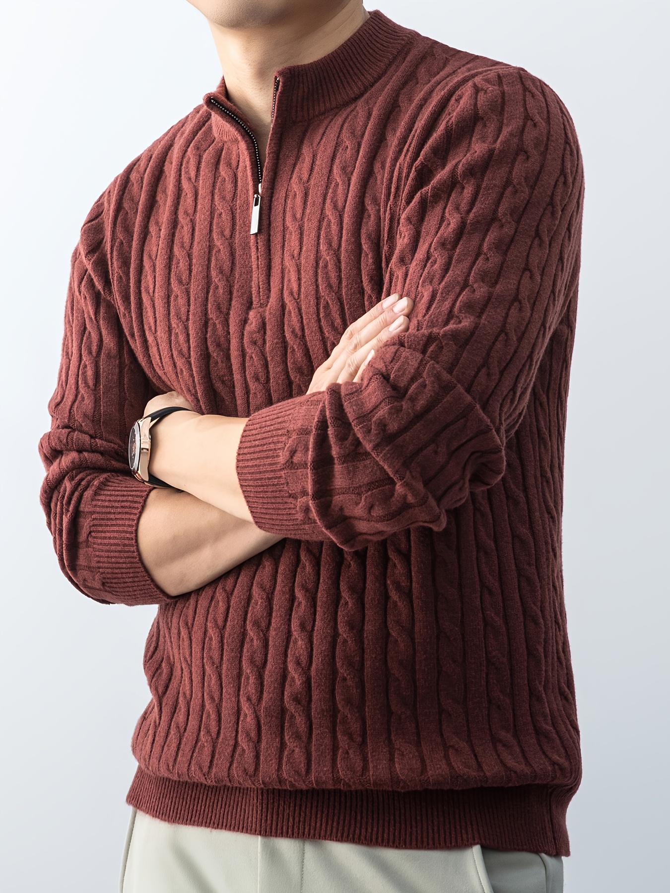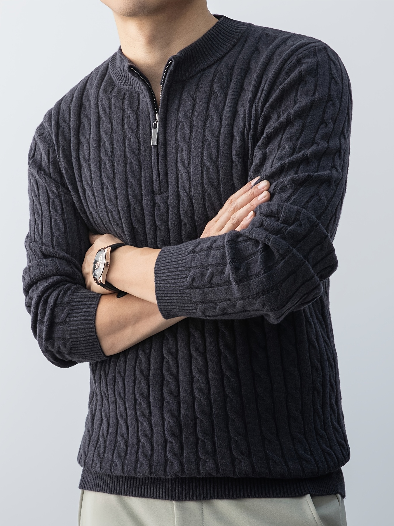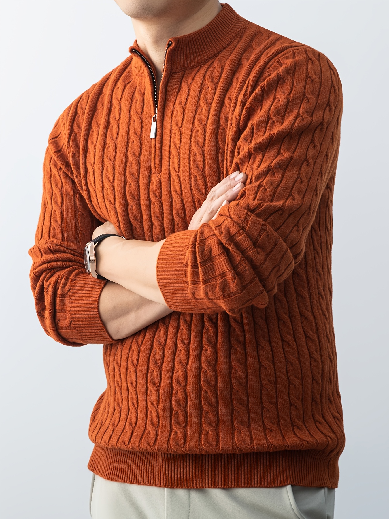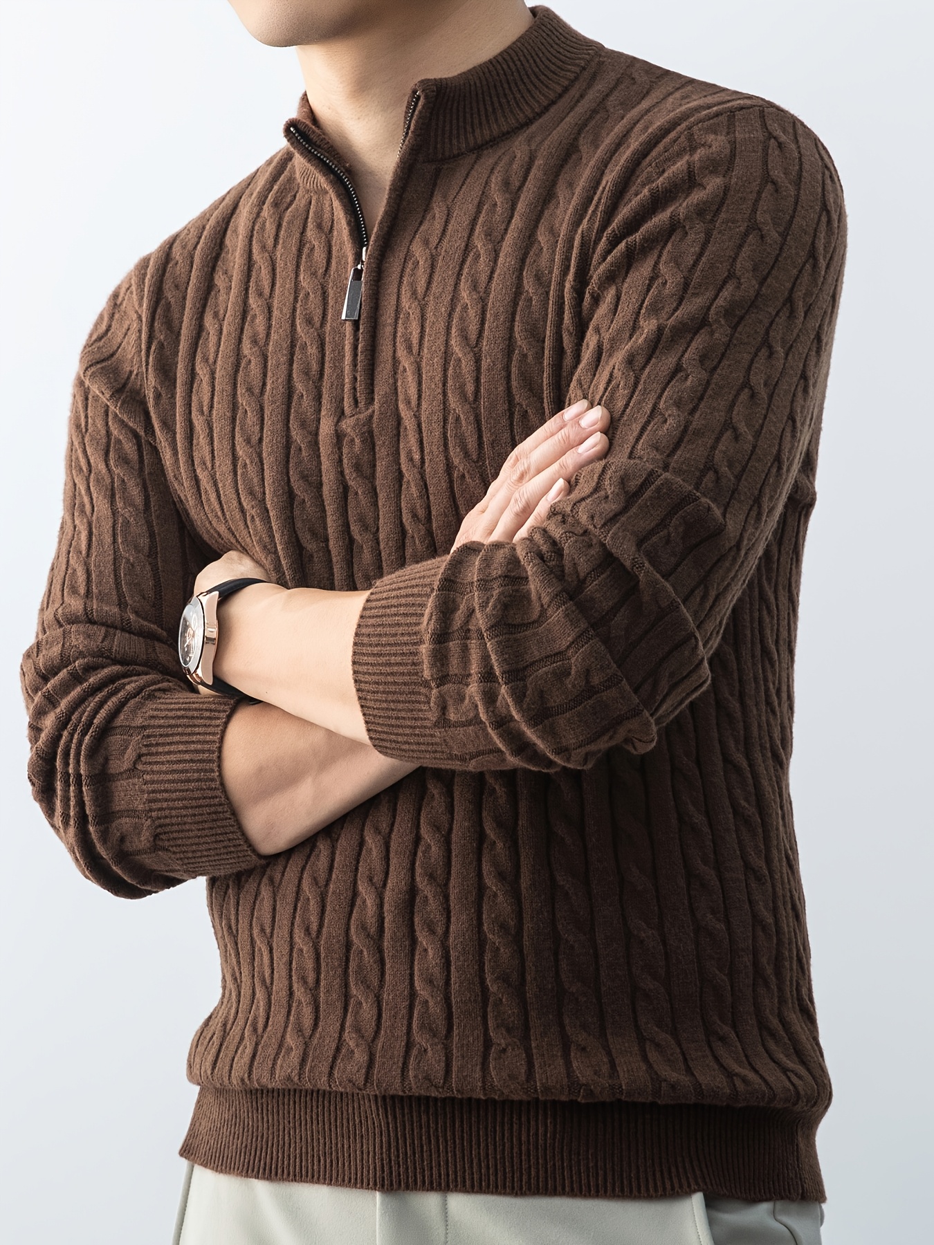 Maglione da uomo autunnale in maglia jacquard con collo alto, elegante e foderato in pile
