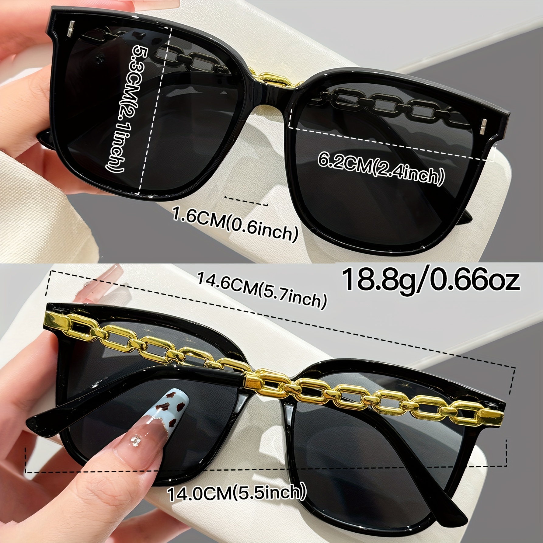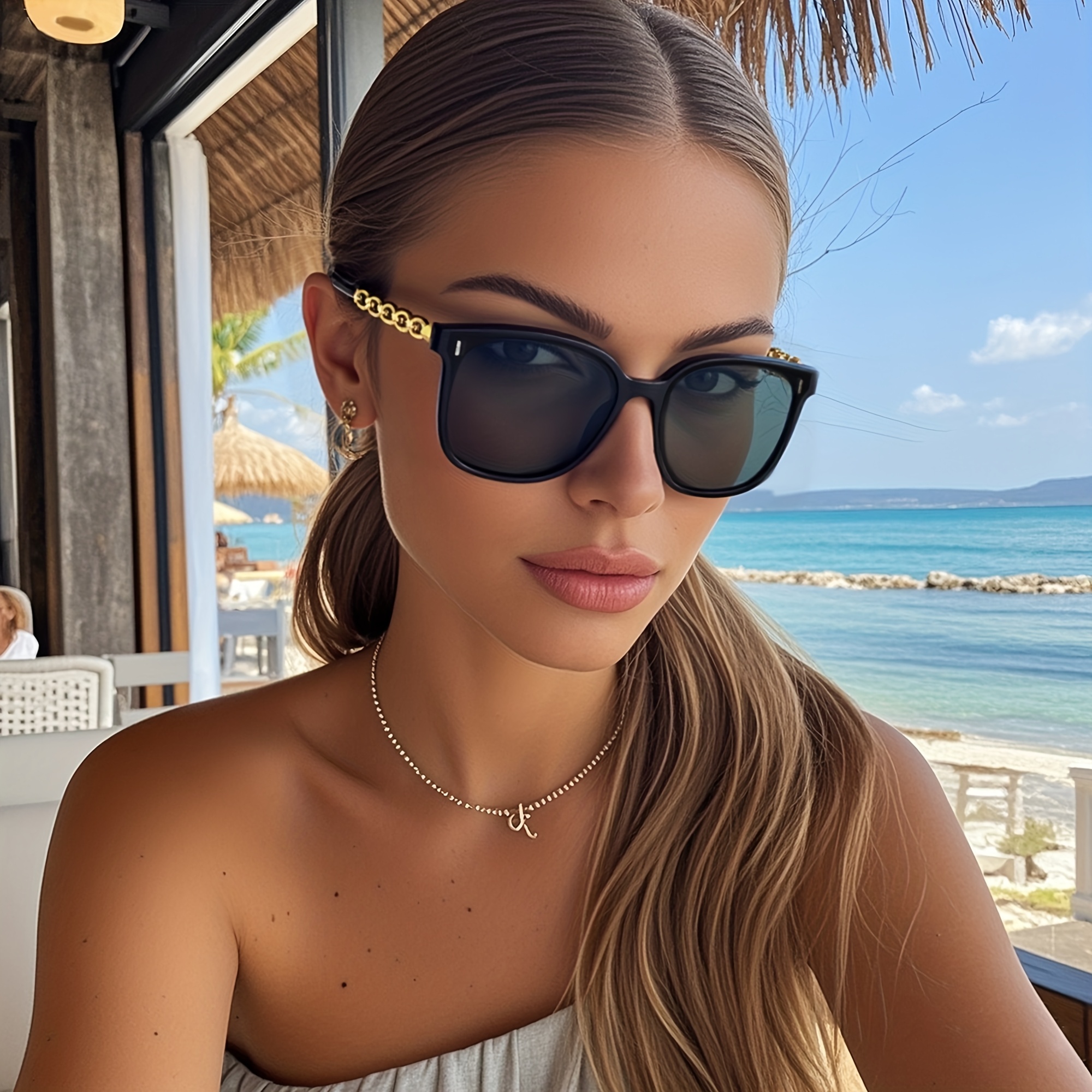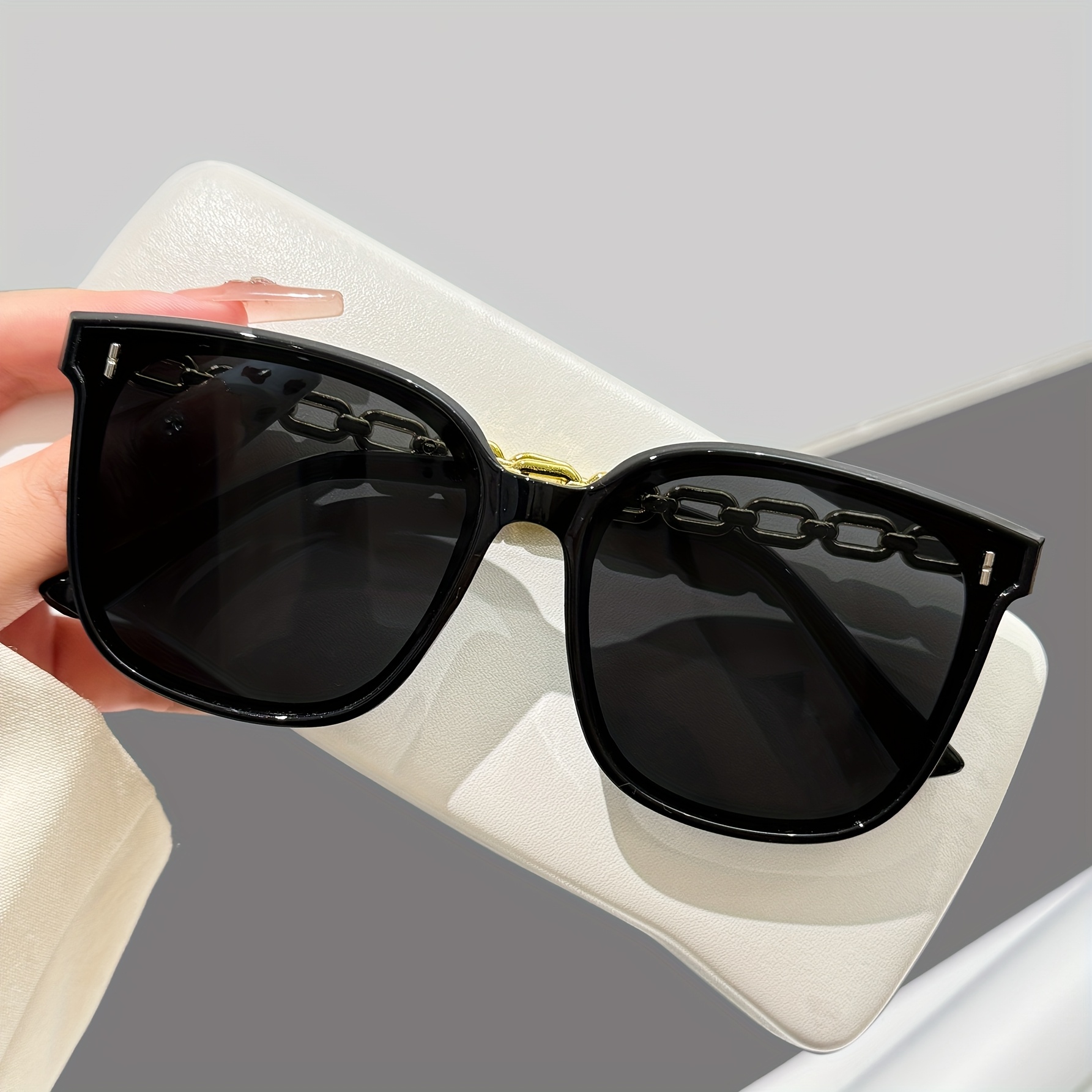 21 Febbraio 2026Occhiali neri quadrati con catena decorativa | Protezione UV400, montatura in policarbonato, ideali per feste e gite in spiaggia, include panno per occhiali