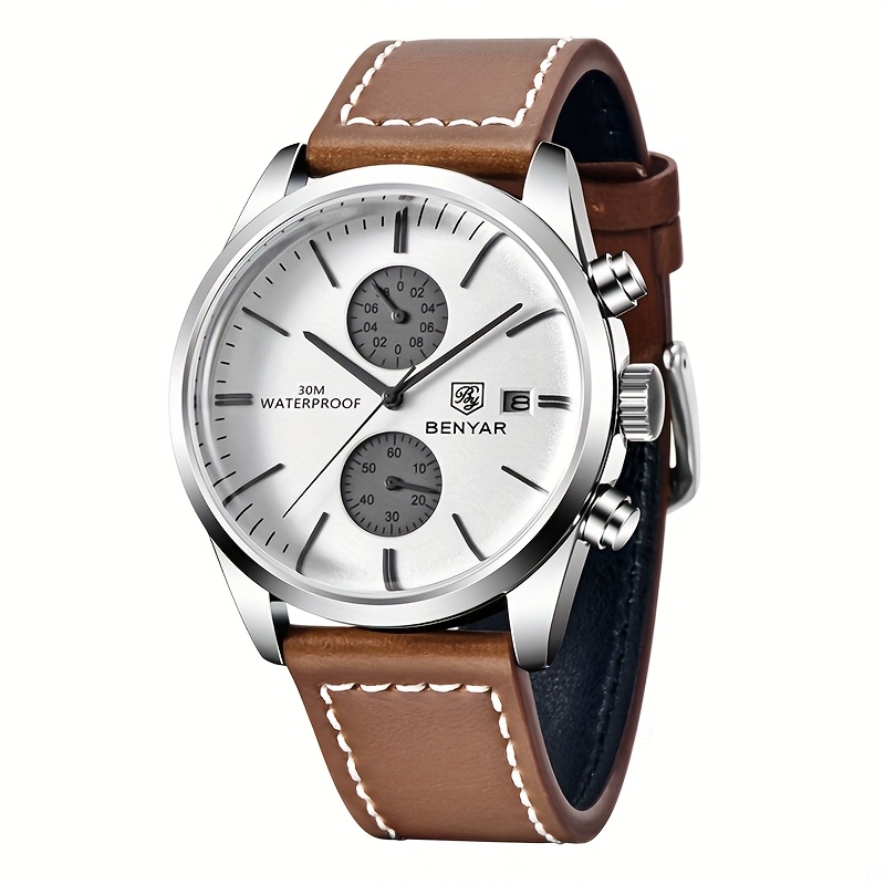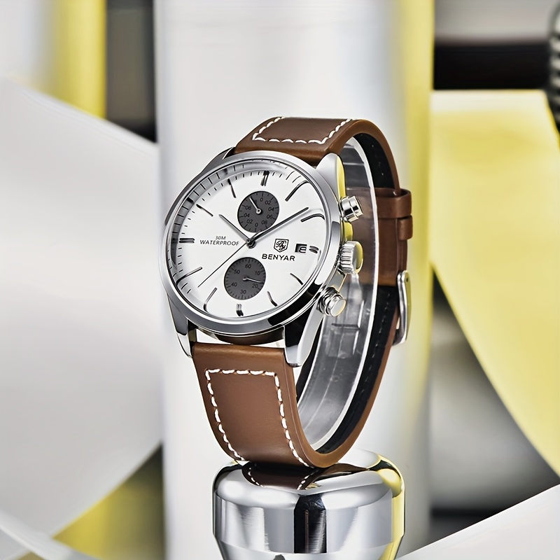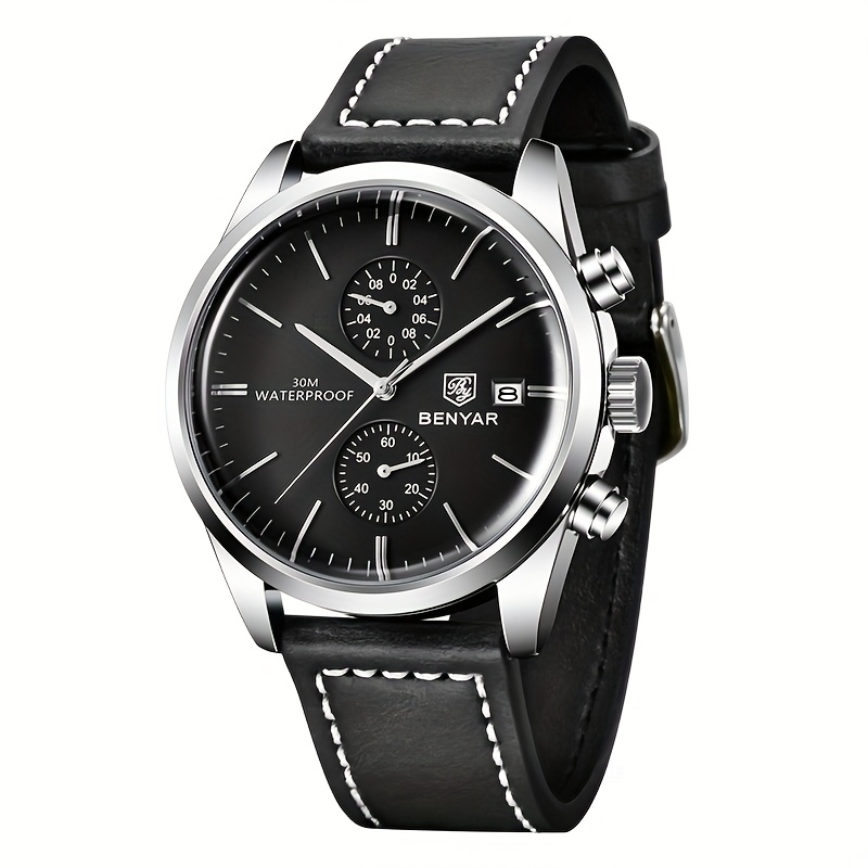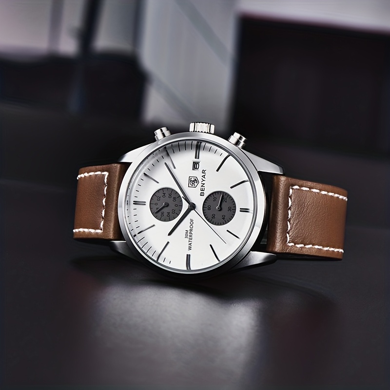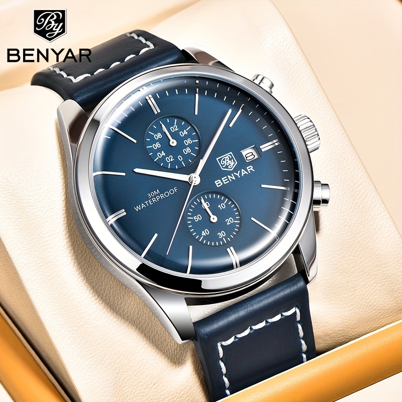 24 Febbraio 2026Orologio da uomo BENYAR al quarzo con cinturino in pelle PU, cronografo, design elegante da uomo per moda, affari e sport, regali per uomo