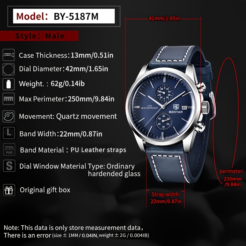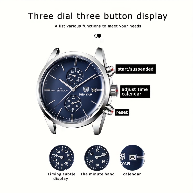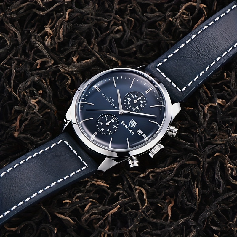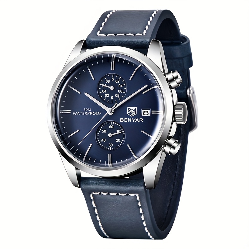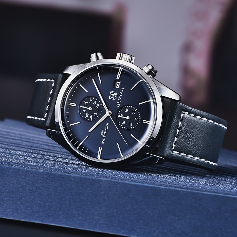 24 Febbraio 2026Orologio da uomo BENYAR al quarzo con cinturino in pelle PU, cronografo, design elegante da uomo per moda, affari e sport, regali per uomo