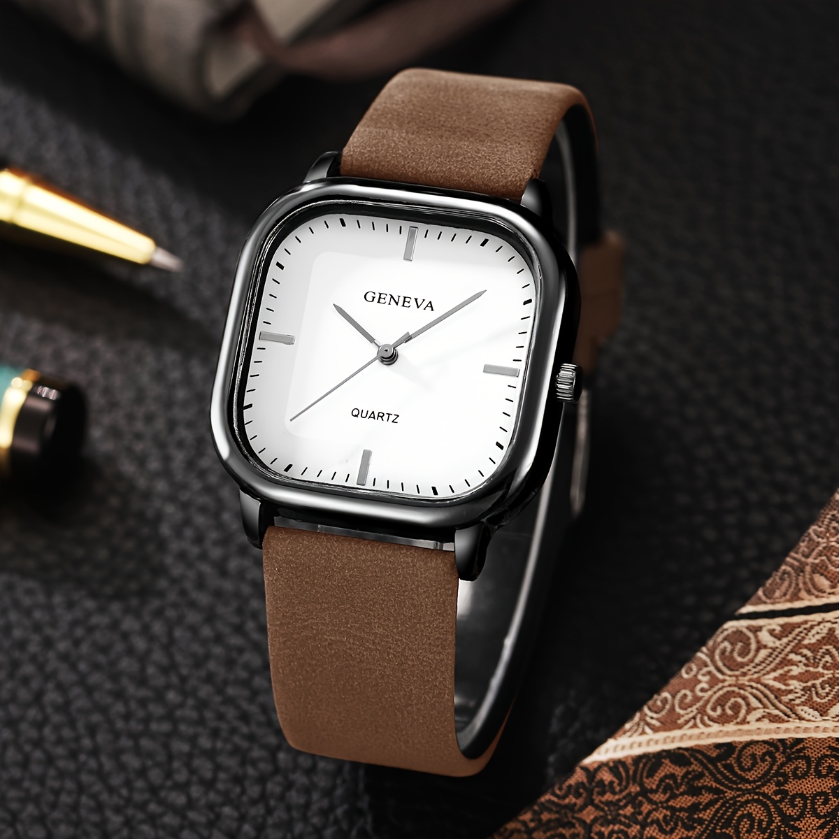 Orologio da Polso Quartz Business di Alta Gamma con Cintura in Similpelle, con Quadrante Calendario
