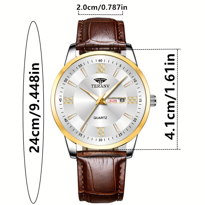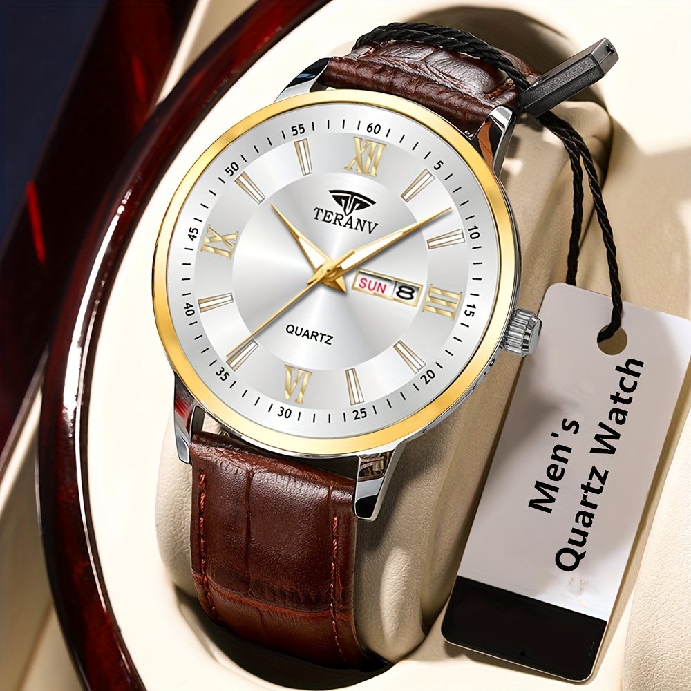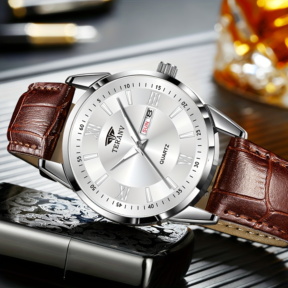 25 Febbraio 2026Orologio da uomo da uomo da lavoro al quarzo di nuova moda alla moda con quadrante circolare, calendario, indicatore settimanale, per vita, viaggio, luminoso, tempo libero, sport, in pelle PU, scelta ideale come regalo