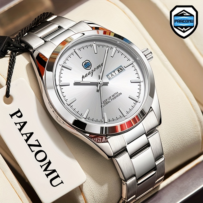 25 Febbraio 2026Orologio da Uomo PAAZOMU in Acciaio Inossidabile, Quarzo Sportivo Casual con Calendario Settimanale e Luminoso Multifunzione Impermeabile per Tutti i Giorni