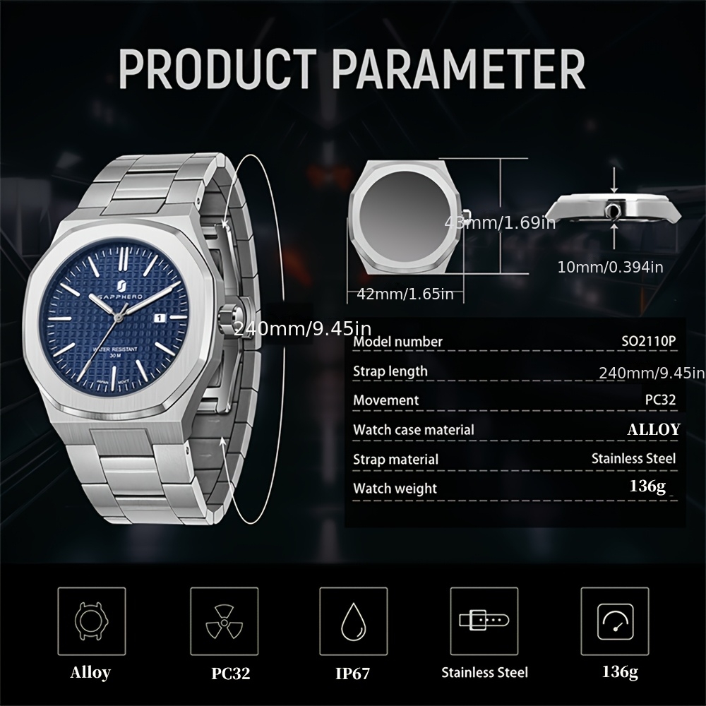 25 Febbraio 2026Orologio da Uomo SAPPHERO al Quarzo, Cinturino in Acciaio Inossidabile, Impermeabile, Resistente, Funzione Data, Antigraffio, Regalo per Uomo, Business, Orologio di Alta Gamma – Regalo di Natale