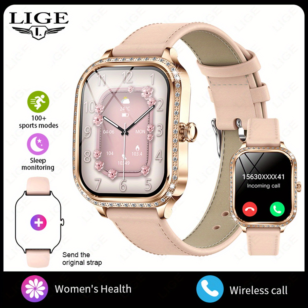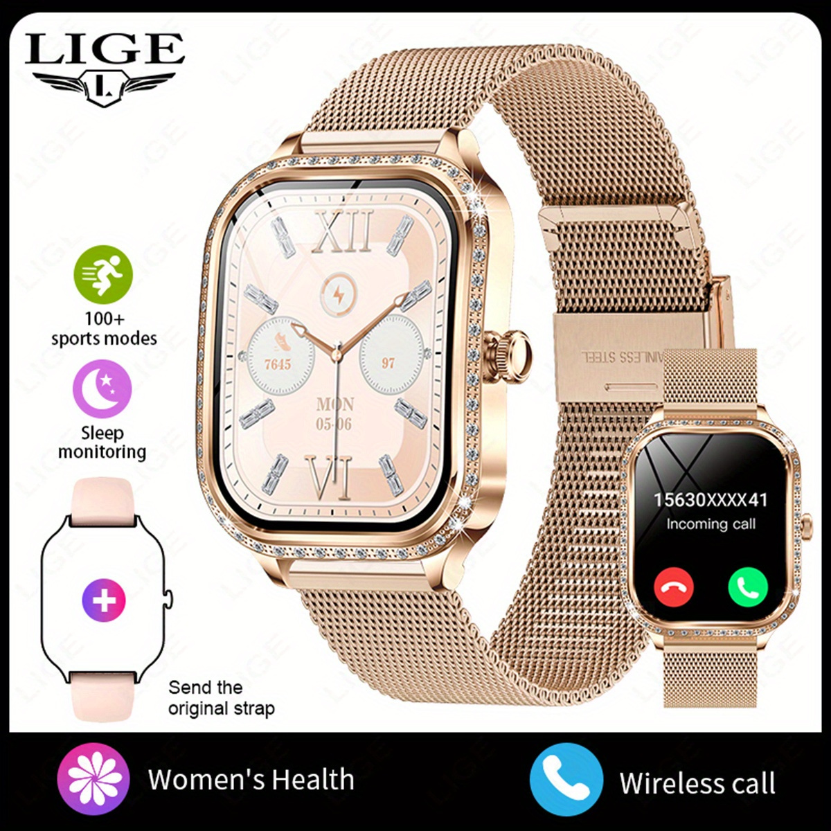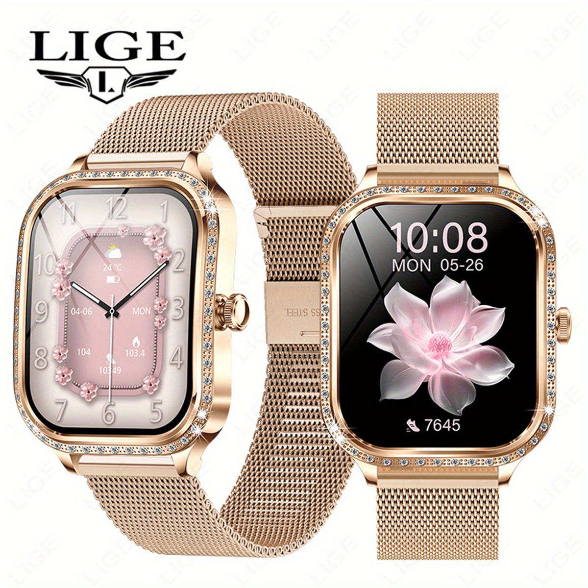 21 Febbraio 2026Orologio Intelligente LIGE Elegante per Donne e Ragazze, Schermo Curvo HD 4.45 cm TFT, Chiamate Wireless e Assistente Vocale, Oro Rosa con Cristalli Decorativi, 100+ Modalità Sportive, Funzioni Femminili, Controllo Musica, Avvisi Messaggi, Meteo, Compatibile con Android/iPhone, Ideale per Fitness e Uso Quotidiano, Regalo Perfetto per Coppie o Compleanni, Halloween, Natale, Festa della Mamma, Ringraziamento per Amiche/Amori
